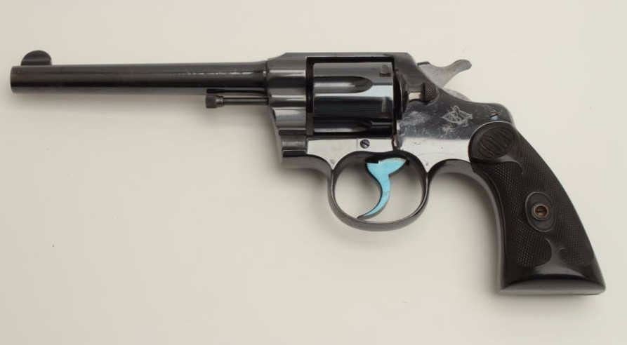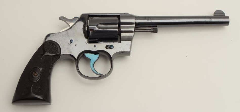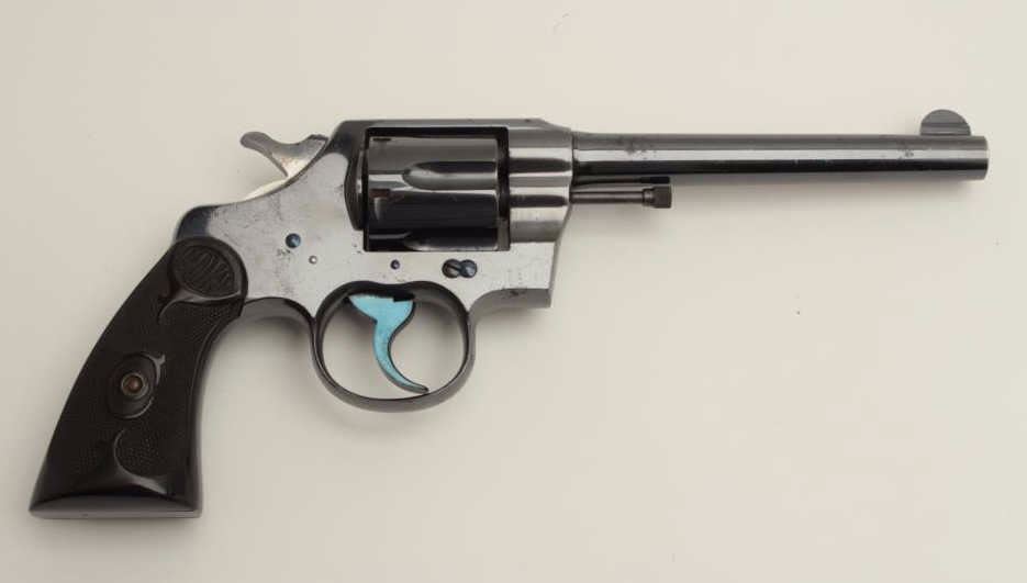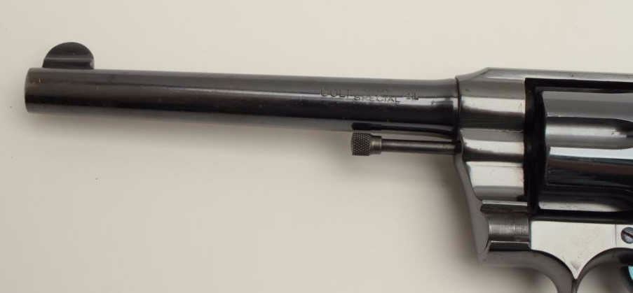 Lot 887 Colt Army Special DA revolver, .41 caliber, 6” barrel, high polish blued finish, checkered hard ru