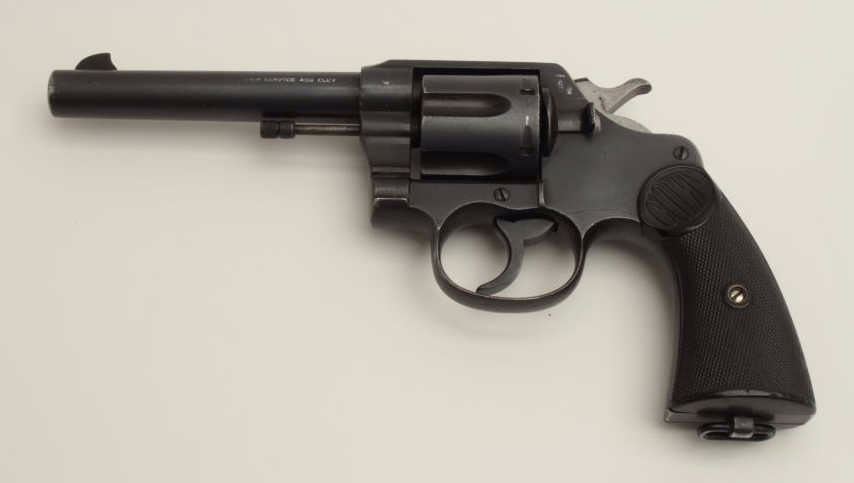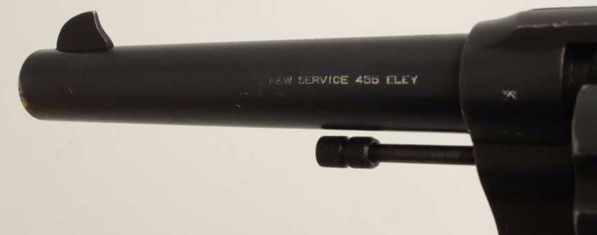 Lot 888 Colt New Service DA revolver, .455 Eley caliber, 5.5” barrel, mat black finish, Canadian proof mar