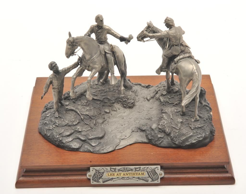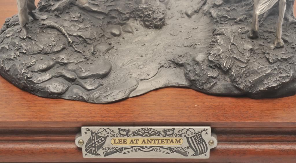 Pewter sculpture by Fran Barnum and issued by Chilmark Collectors Society entitled “Lee at Antietam”, #007/2500, approximately 6.5” in height including wood base with Certificate of Registration signed and dated Apr. 25,1988. Est.: $250-$500.