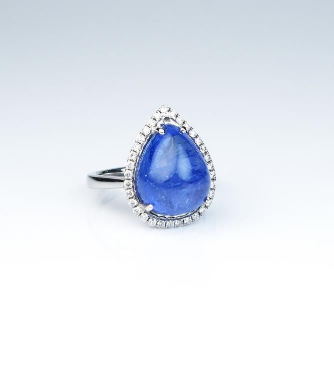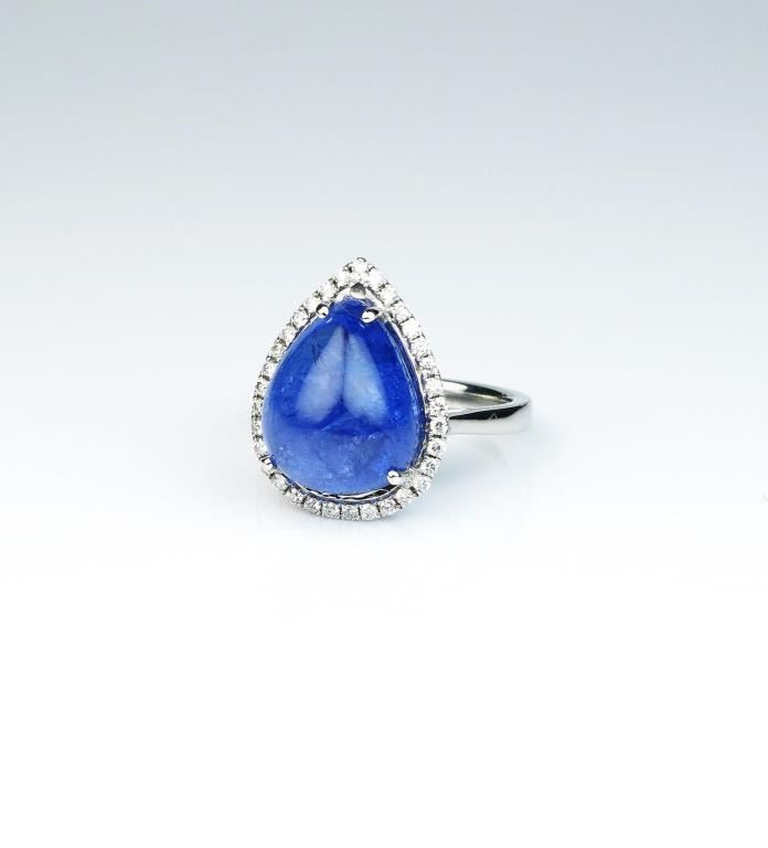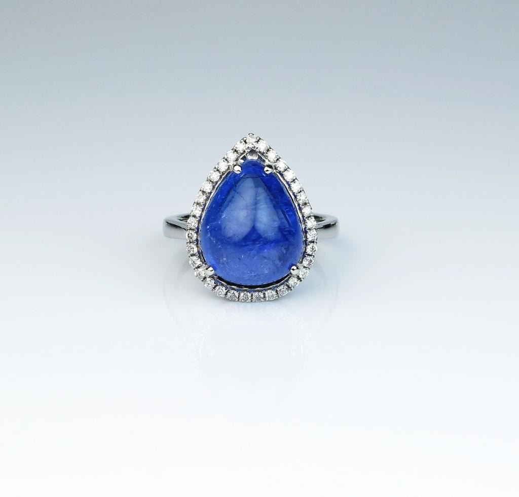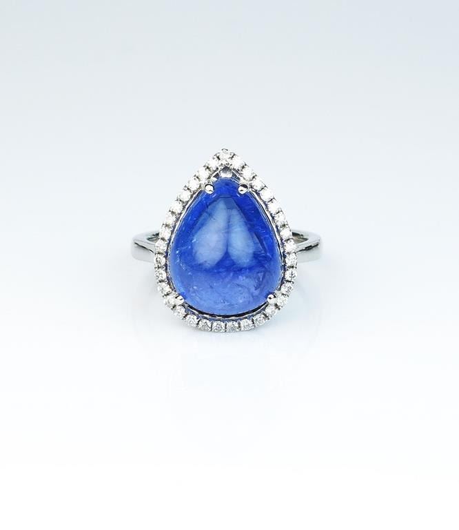 Lot 903 Gorgeous ladies ring featuring a 10.75 carat Cabochon cut purple blue African Tanzanite and surrou