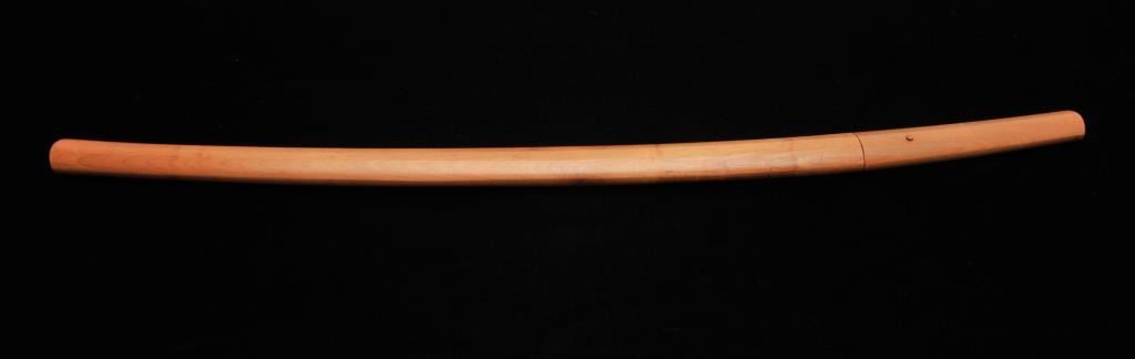 Shinto period katana (Long sword) with a 26” blade, signed, and full polish in sira-siya (storage case). Excellent and fresh polish. Straight style blade with a thin temper line. Good quality. See lot 725 for mountings that are suitable to this blade. Est.: $1400-$2800