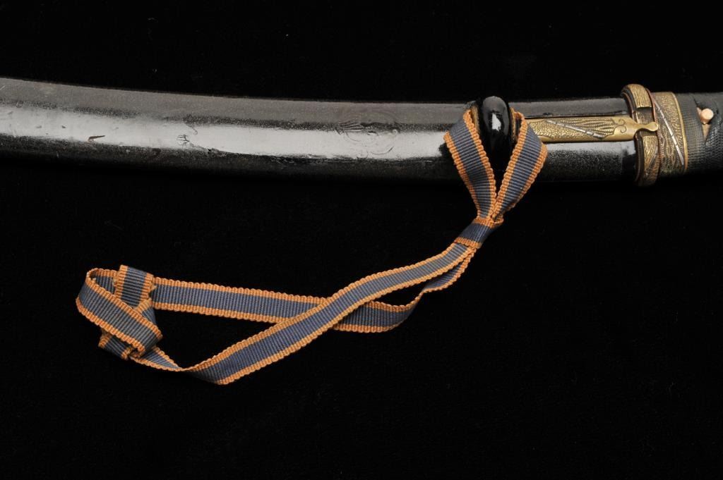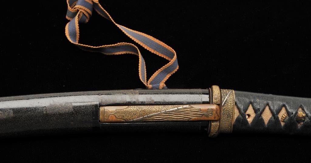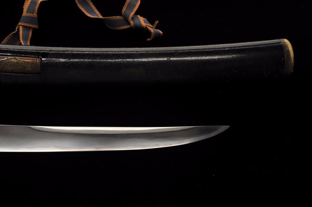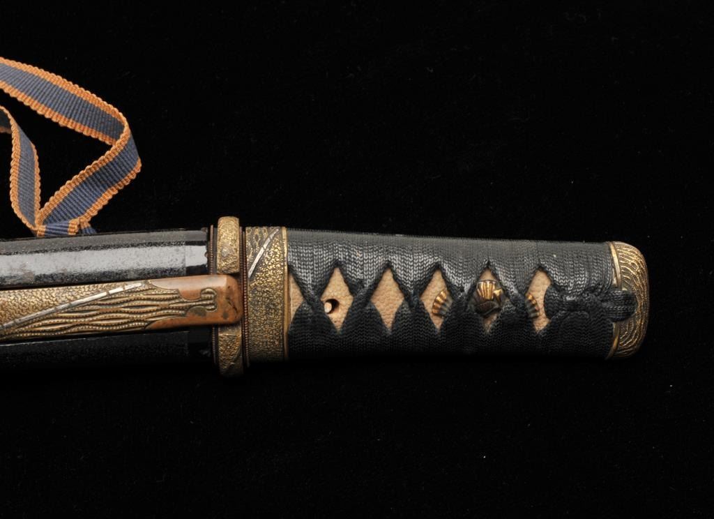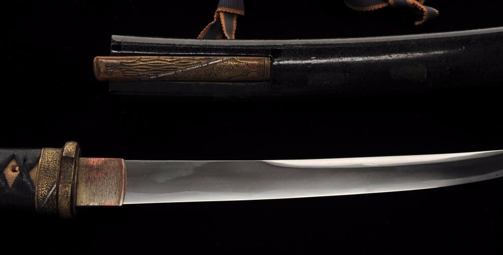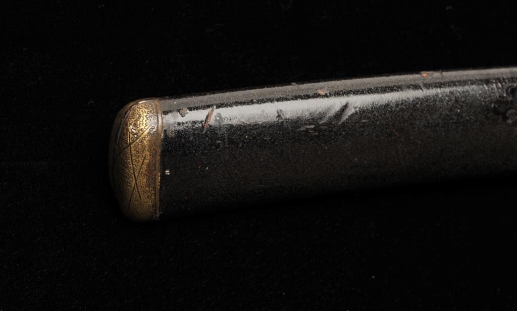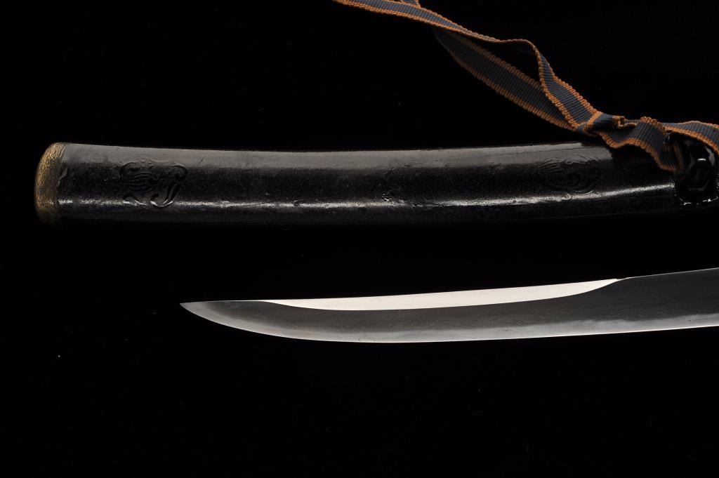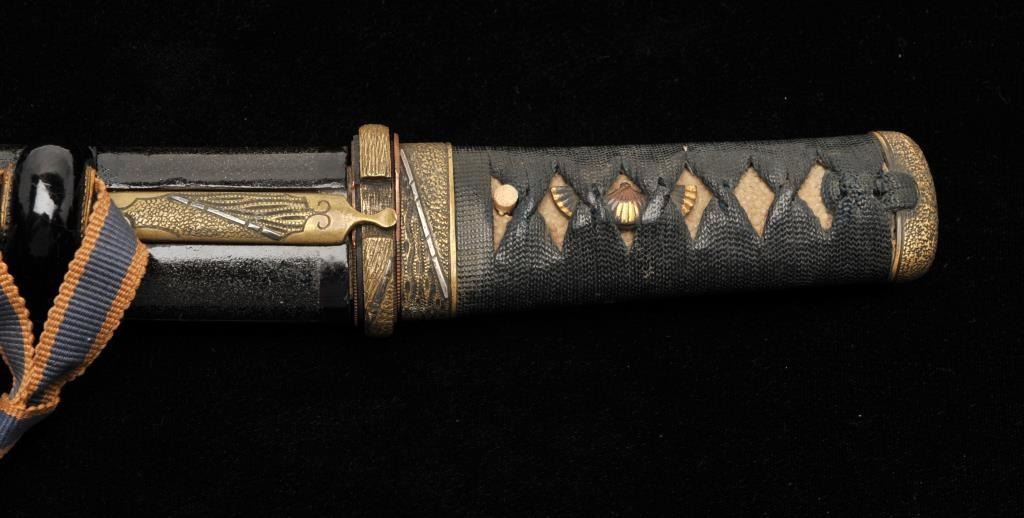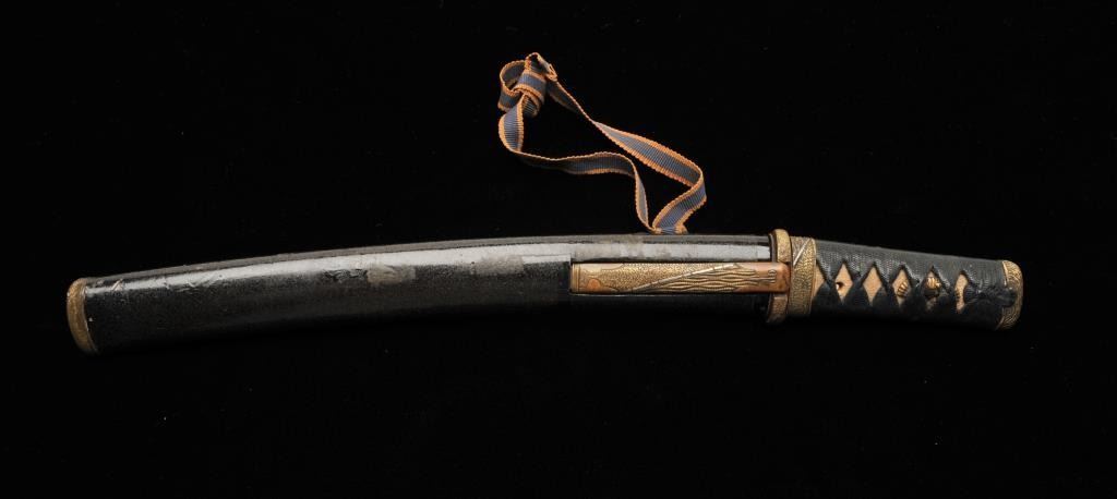 Lot 909 Koto period tanto in traditional full mounting retaining kozuka knife and kogai. 10” blade (Unsign