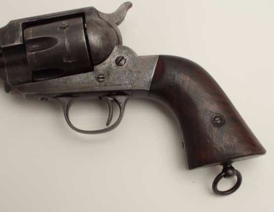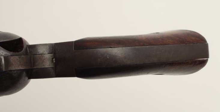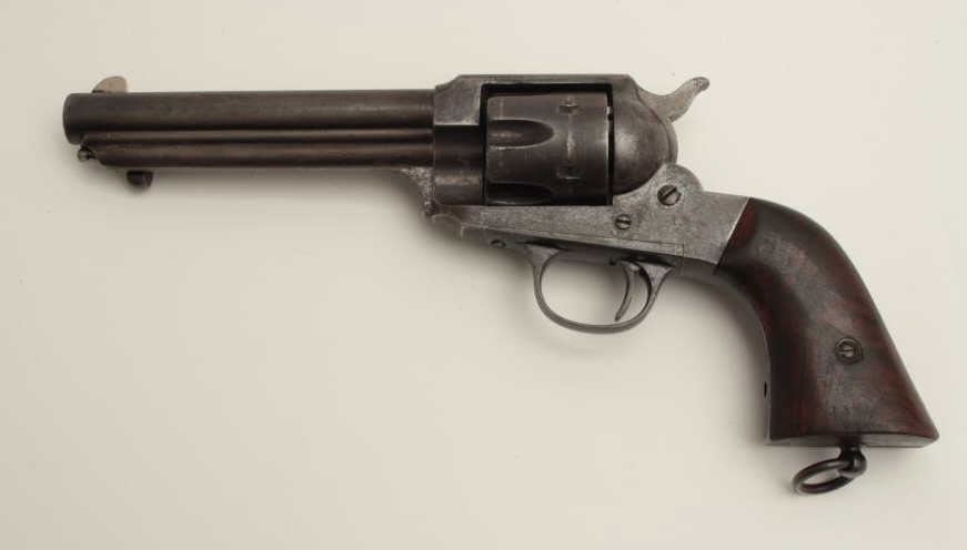 Remington Model 1888 revolver, S/N 572 (barrel #287), in 44/40 caliber, 5.75” barrel, blued finish, pictured in the “Guns of Remington” book; from an award winning Remington Arms Collectors collection; 50-70%original blue, wood grips and lanyard ring present. (Antique). Est.: $5,000-$10,000.