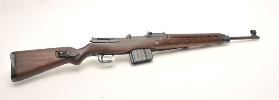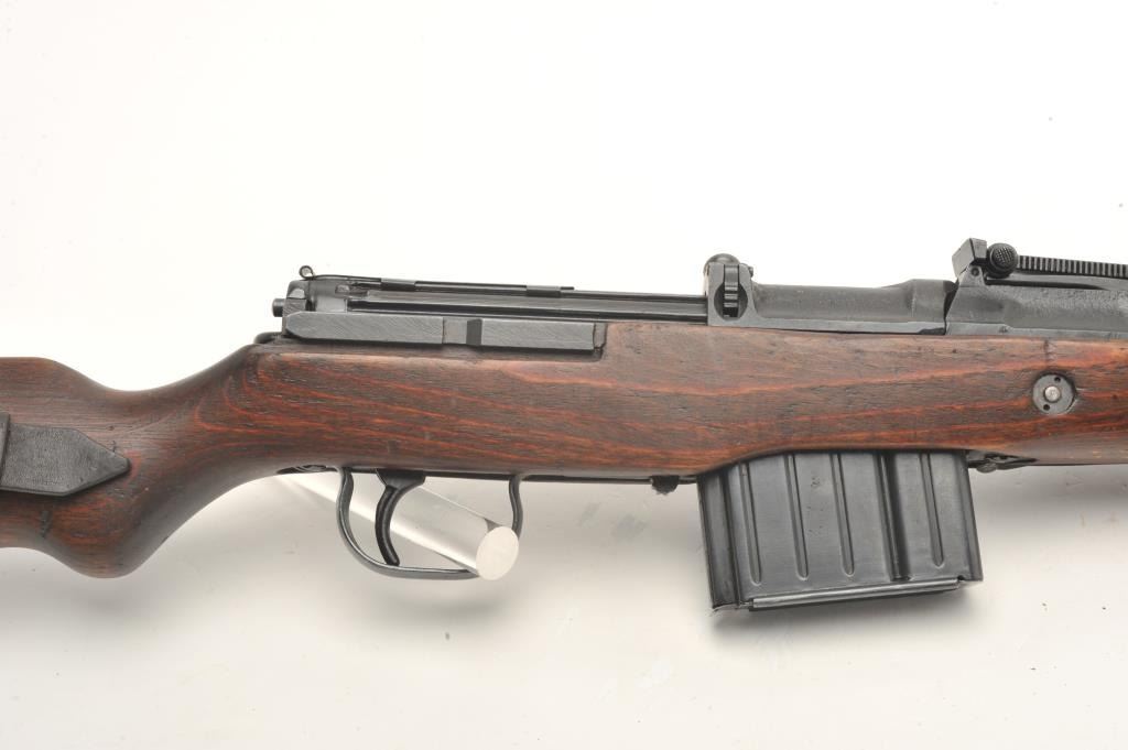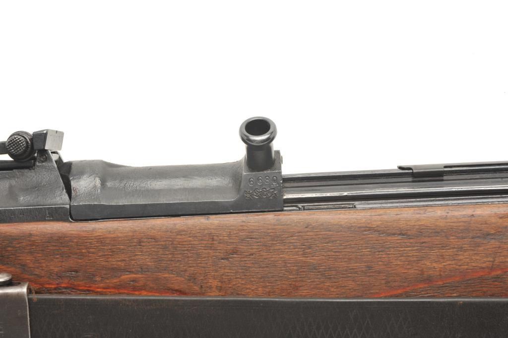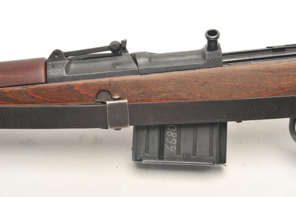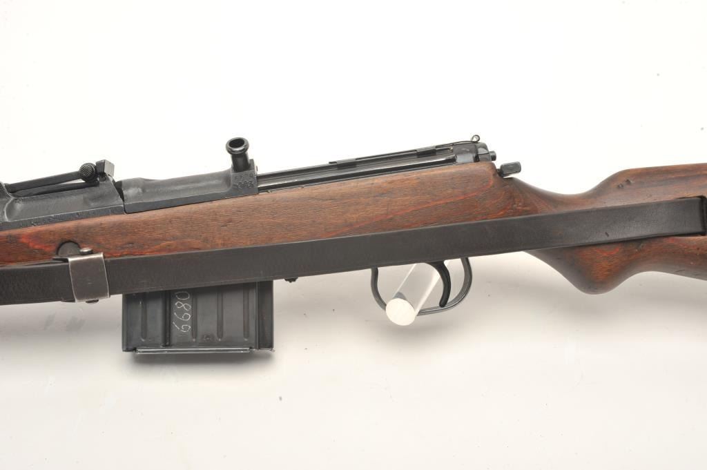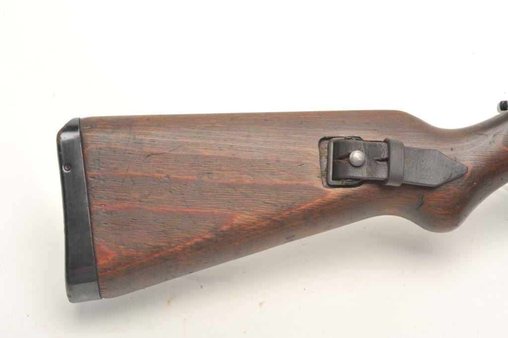 German G43 semi-automatic rifle, import-marked, code “ac44”, 7.92mm caliber, 21.5” barrel, military finish, wood stock with leather sling, S/N 6680, in overall very good condition showing majority of finish,very good bore, crisp action, good markings and very good wood stock (top hand guard is a replacement, cleaning rod missing. (C&R). Est.: $1,000-$2,000.