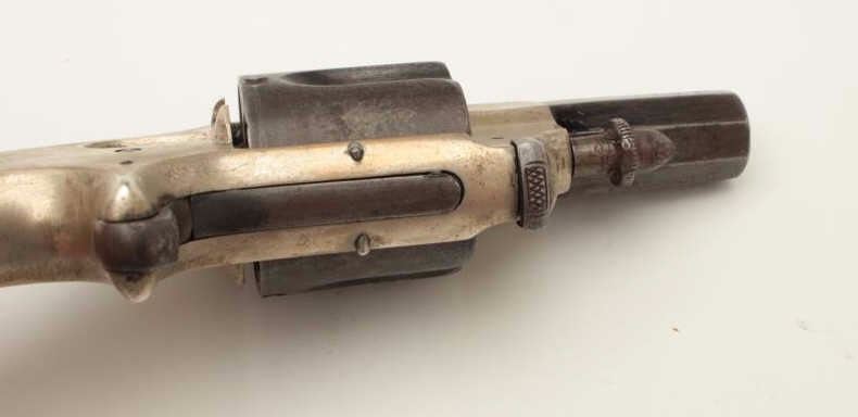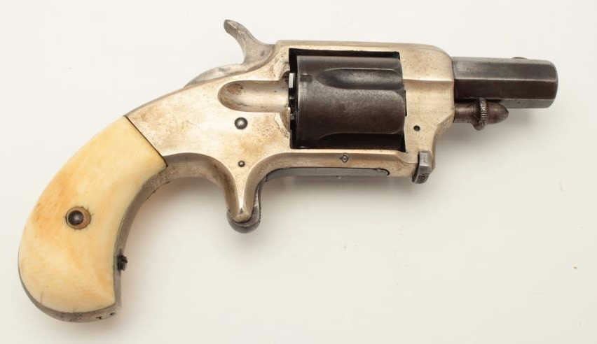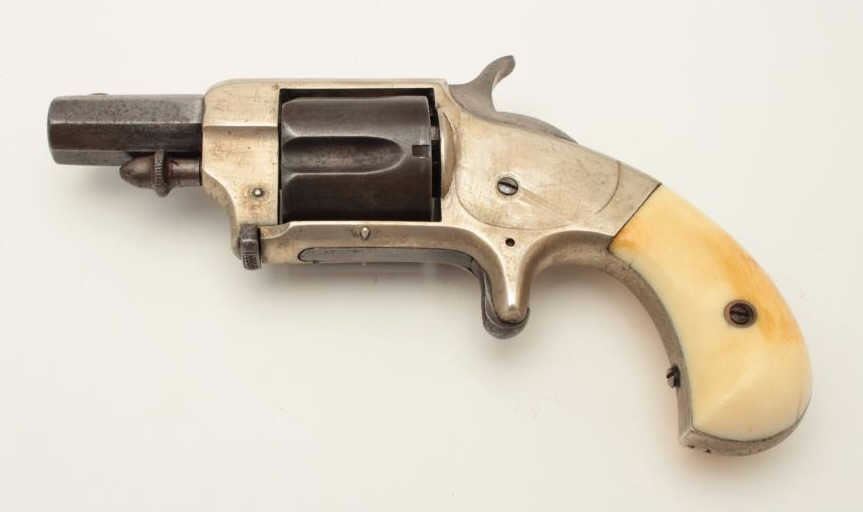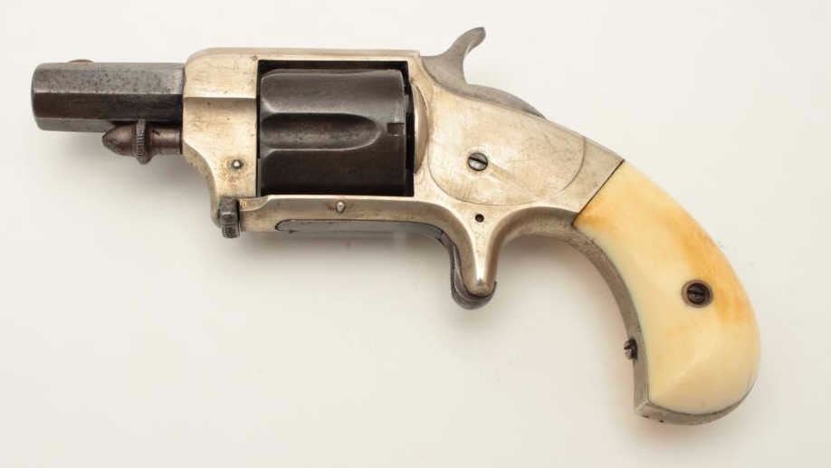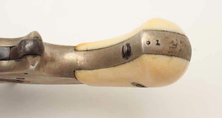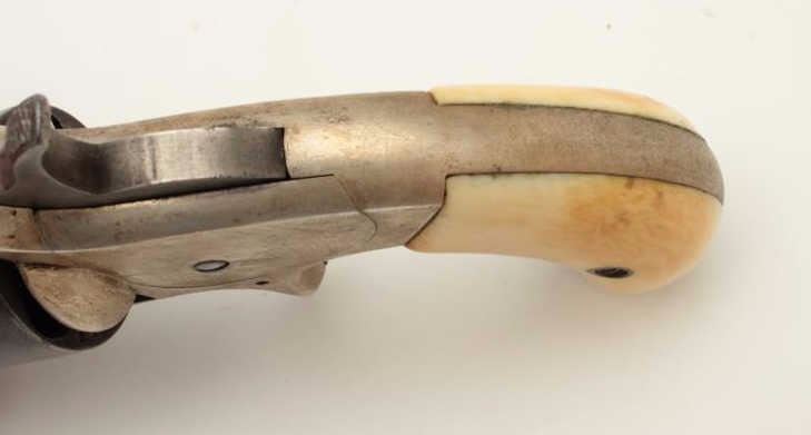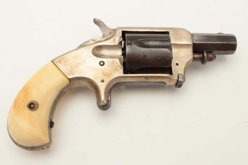 Whitneyville .38 caliber spur trigger revolver, desirable 2” octagon barrel with two-tone silver and blued finish, ivory grips, S/N 51, in overall very good condition. (Antique). From the Whitneyfamily collection. Est.: $400-$800.