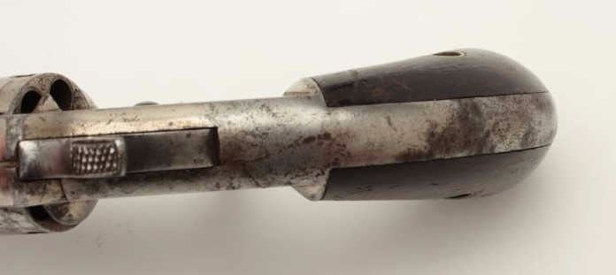Rare Whitney “Monitor” .22 caliber spur trigger revolver, 2.25” round barrel, nickel finish, non-fluted cylinder, rosewood grips, S/N 8072, in overall good to very good condition. (Antique). From the Whitneyfamily collection. Est.: $300-$600.