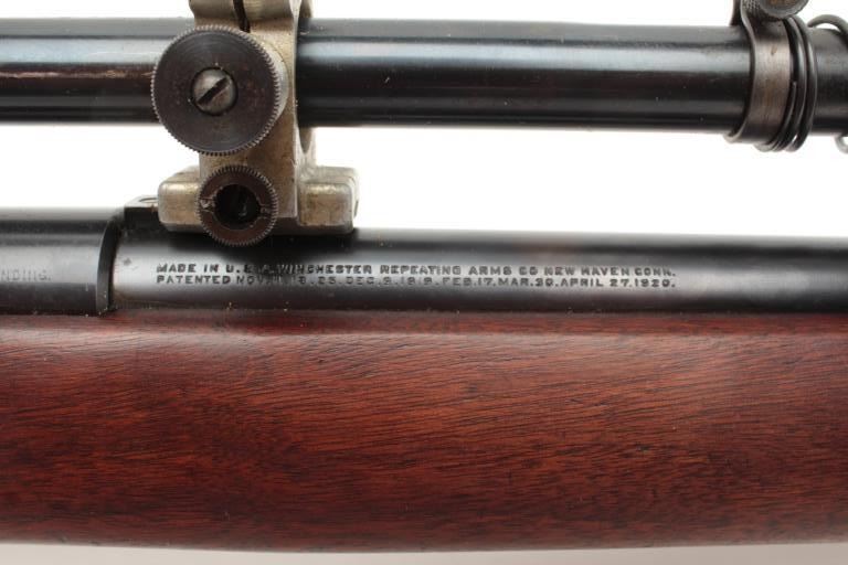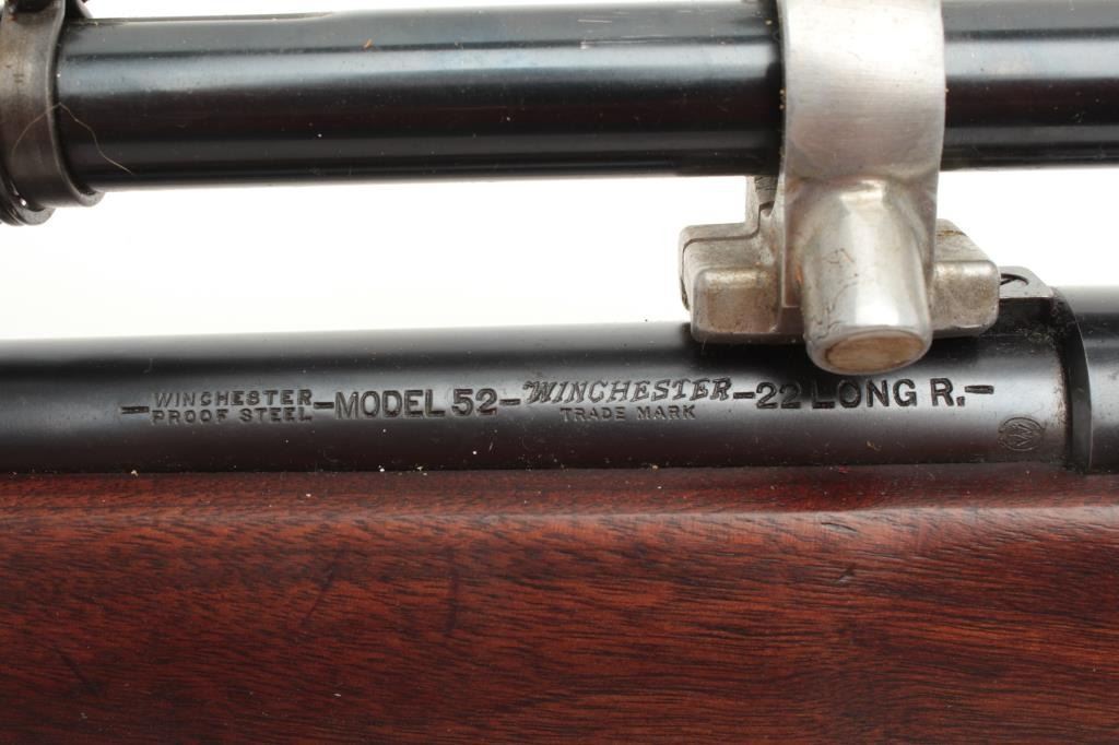 Lot 964 Winchester Model 52 bolt action target rifle, .22LR caliber, 28” barrel, blued finish, wood stock,