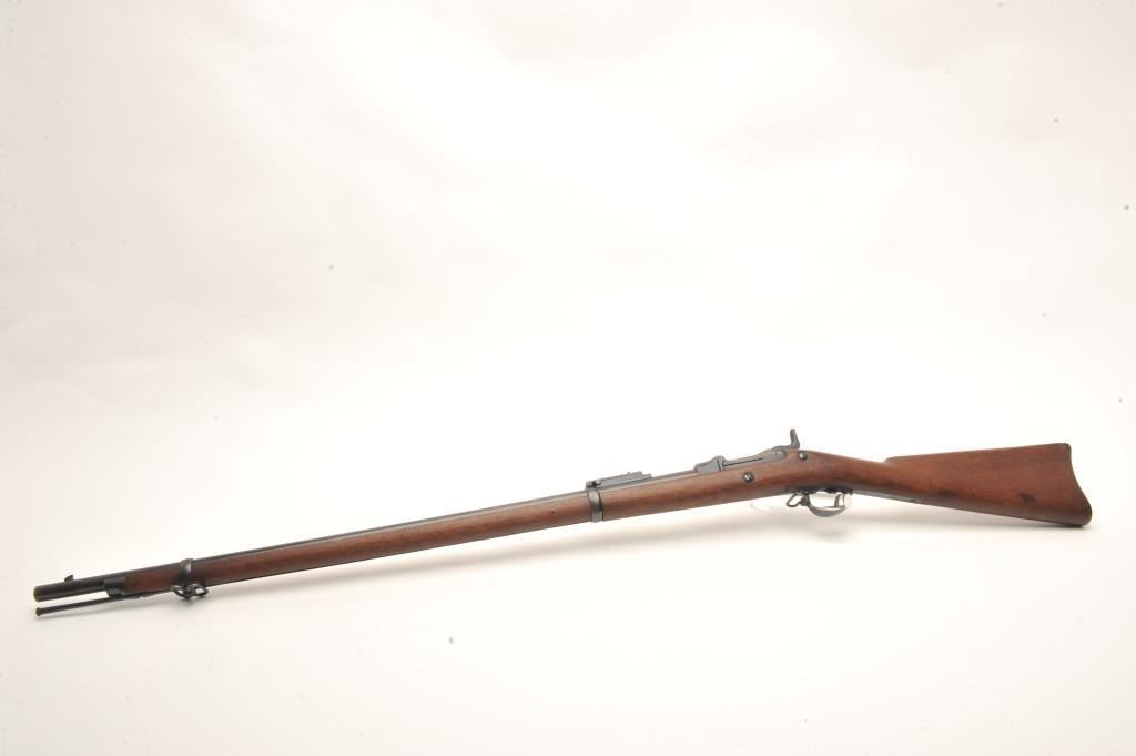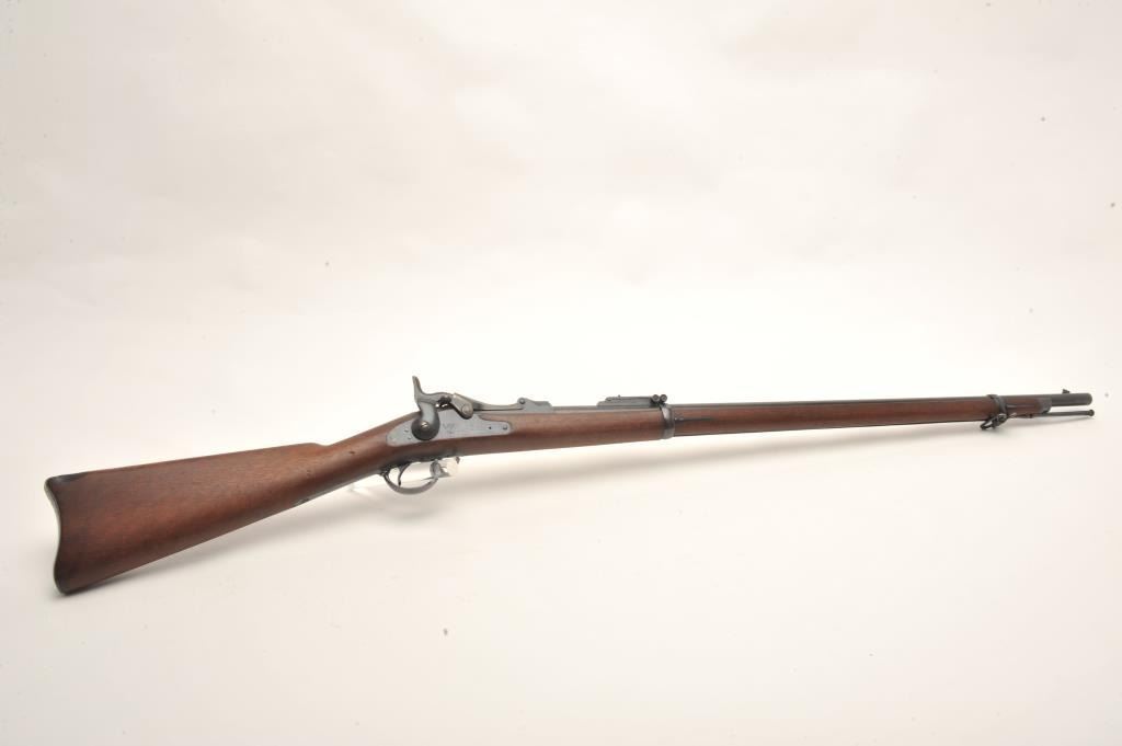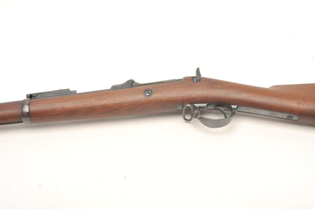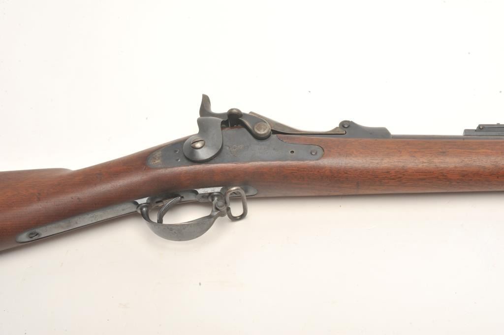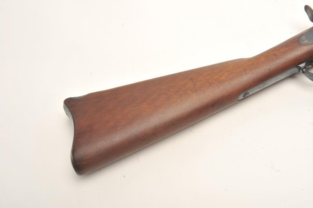 Lot 965 U.S. Springfield trapdoor rifle, marked “Model 1884”, .45-70 caliber, 32.5” barrel, blued and case