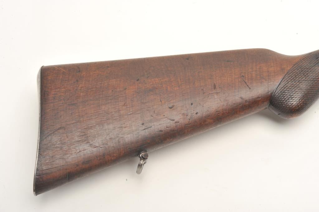 Lot 974 Antique Husquvarna Vapenfabrik signed cape gun in 16GA x 9mm rifle. Measures 45” overall with 28 ¾