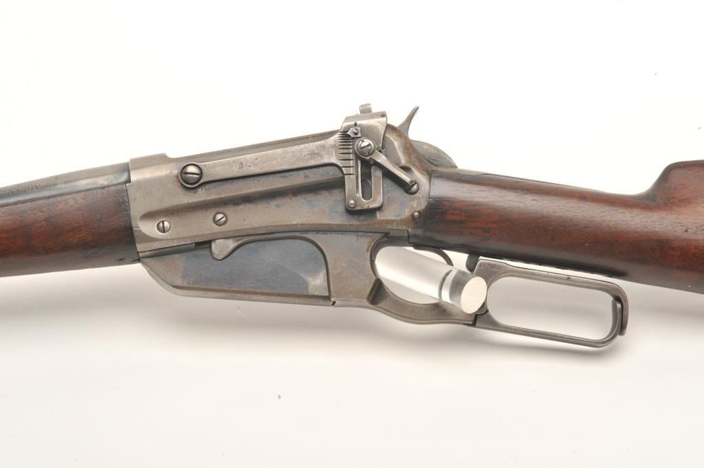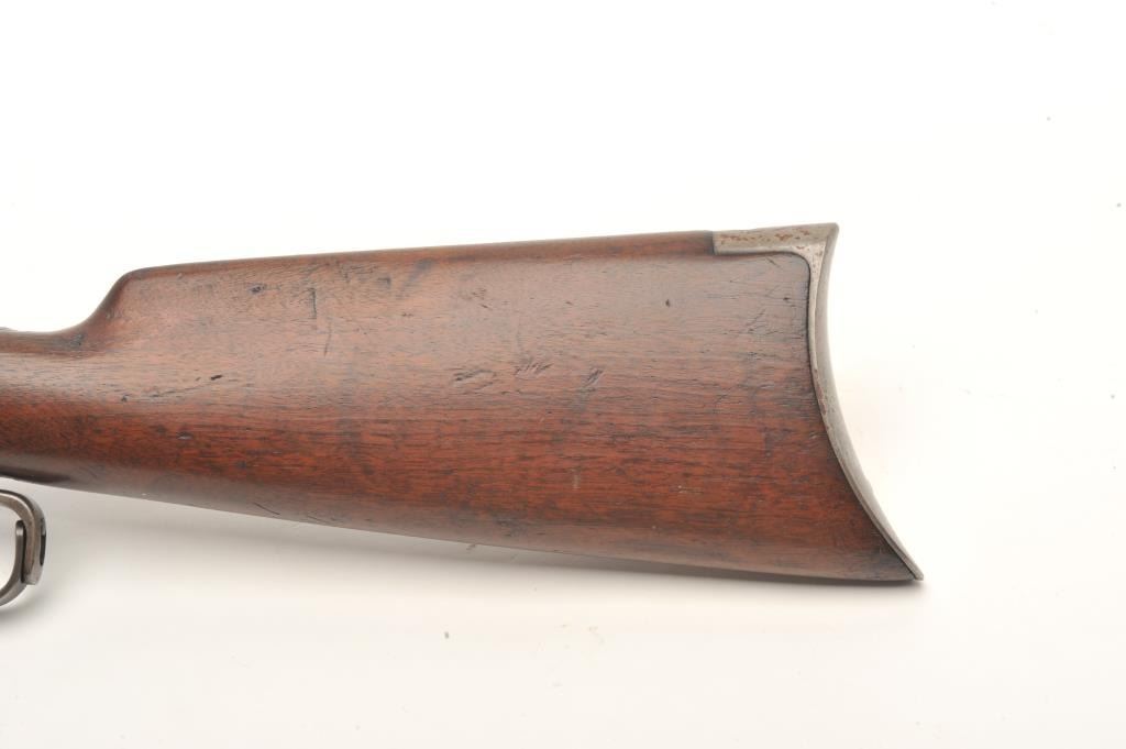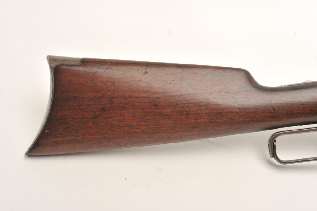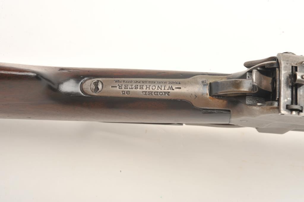 Winchester Model 95 lever action rifle, .30 Army caliber, 28” round barrel, blued finish, Lyman receiver mounted sight, wood stocks, S/N 422289, in overall very good + condition with a crisp action and markings,considerable original blue remaining (mostly on barrel and some in protected areas of receiver, very good bore and wood stocks. (C&R). Est.: $500-$1,000.