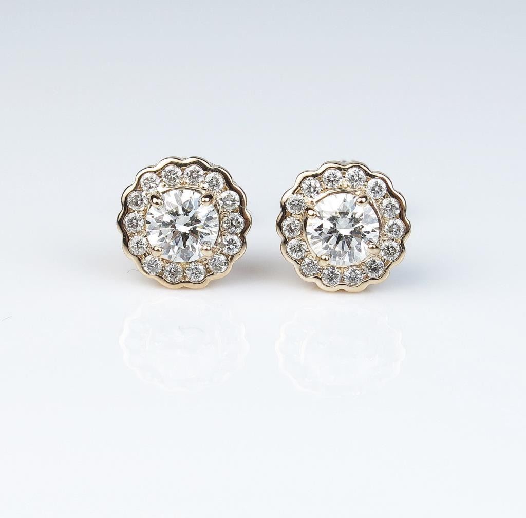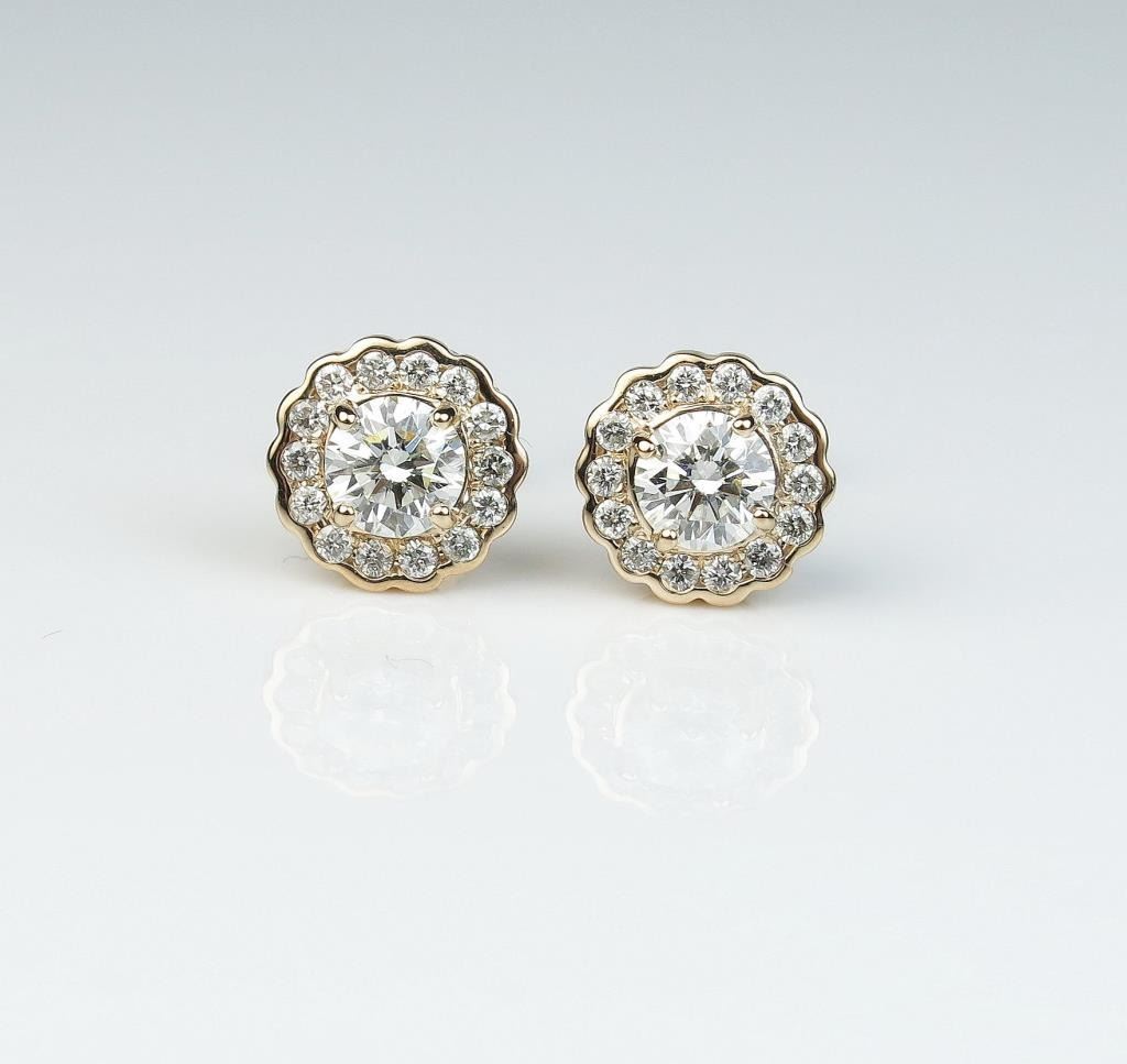 Lot 982 Very high quality ladies earrings with two ‘IDEAL’ cut diamonds weighing 0.75 carats of F-G colors