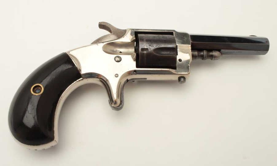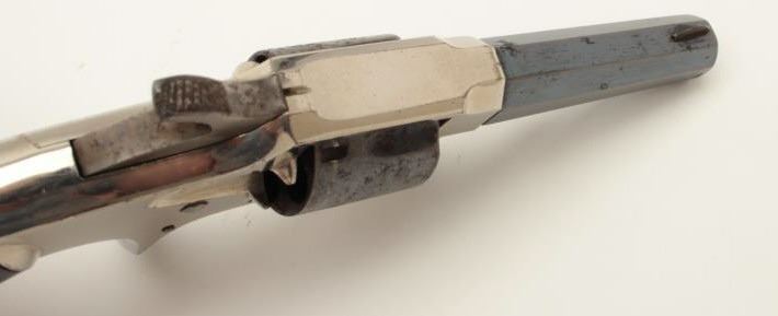 Lot 1001 Whitneyville .22 caliber spur trigger revolver, 2.5” octagon barrel, blued and nickel two-tone fin