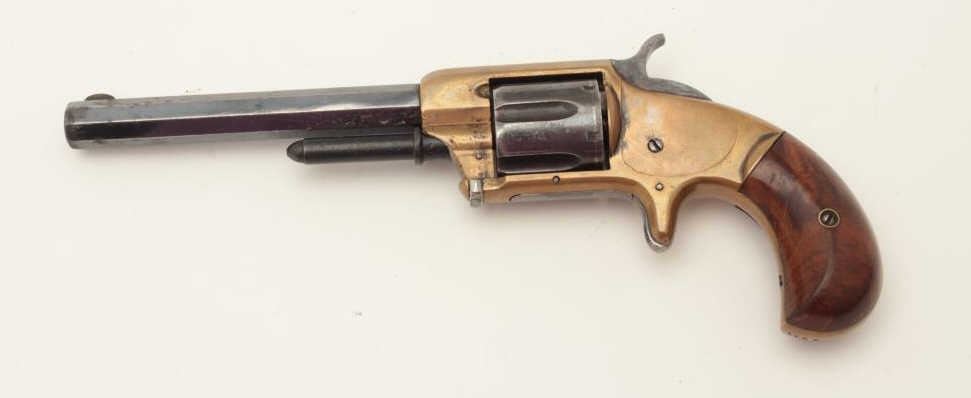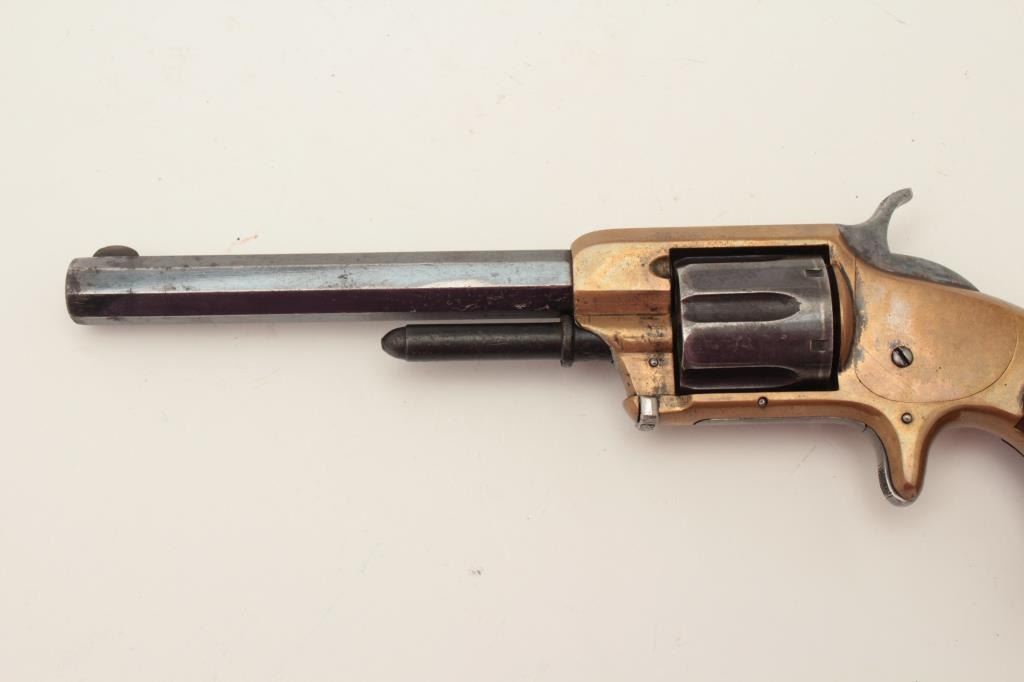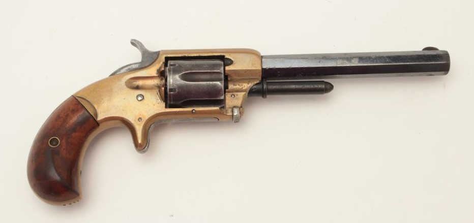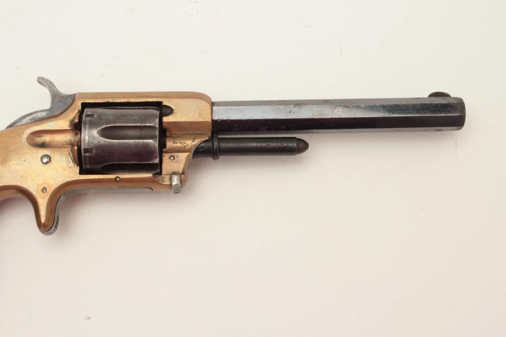 Lot 1003 Whitney .32RF caliber spur trigger revolver, 6-shot, 5” octagon barrel, brass frame, blued cylinde