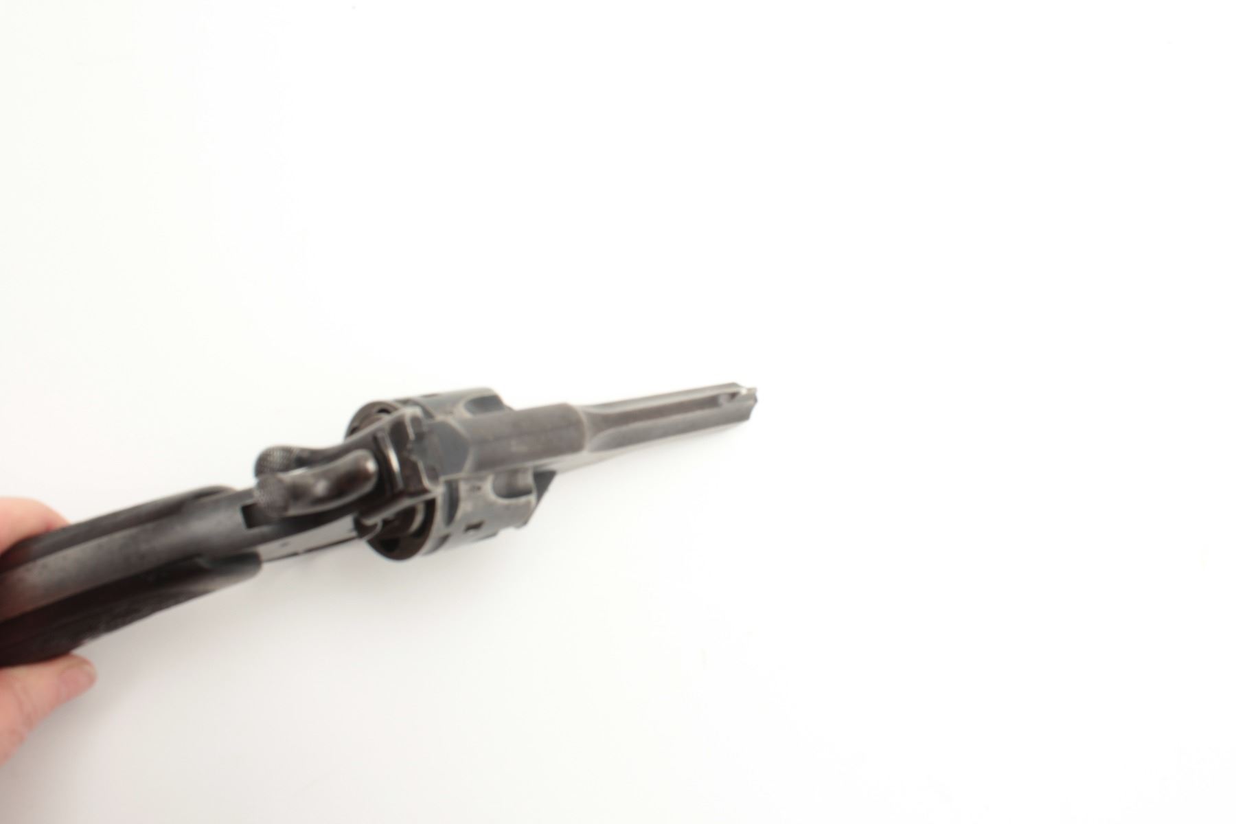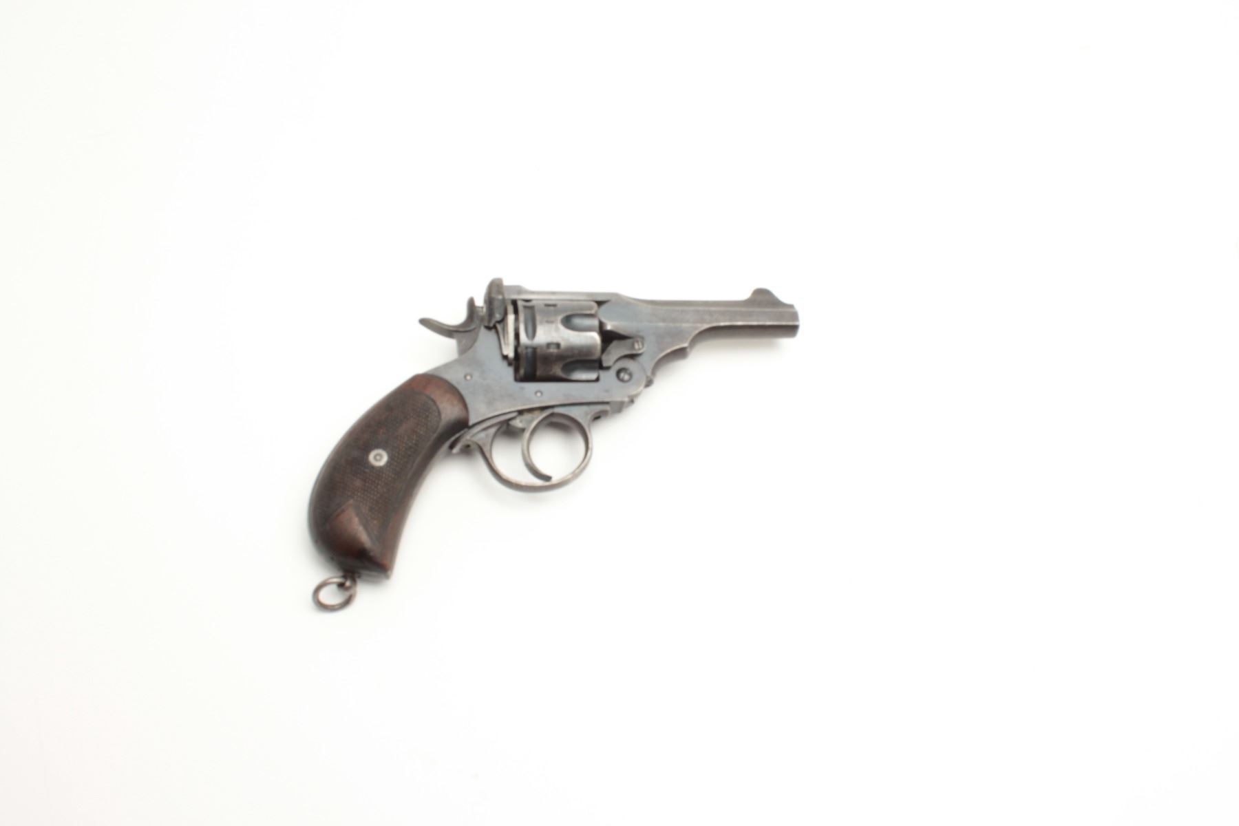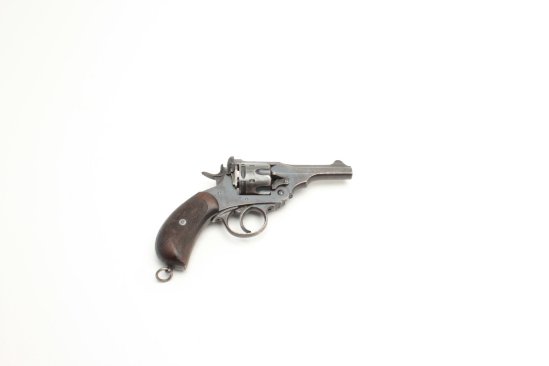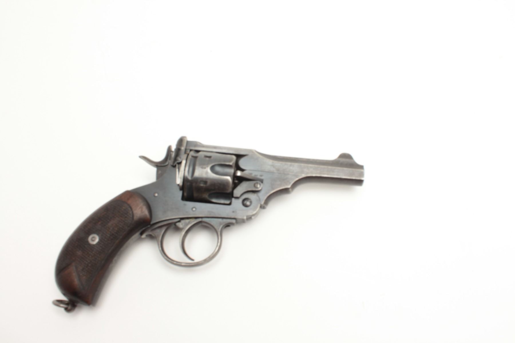 Lot 1016 British Webley Mark V DA revolver, .455 caliber, 4” barrel, blued finish, checkered wood grips, S/