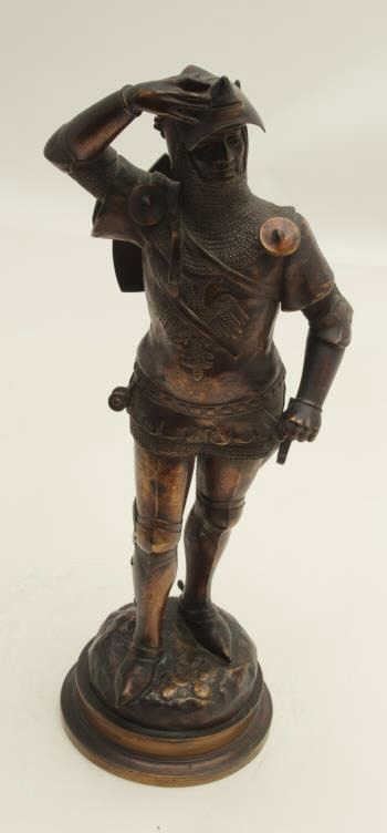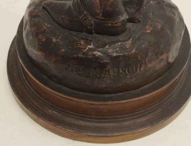 Lot 1026 Authentic antique bronze circa turn of the century signed “J.E. Masson” and shows medieval knight