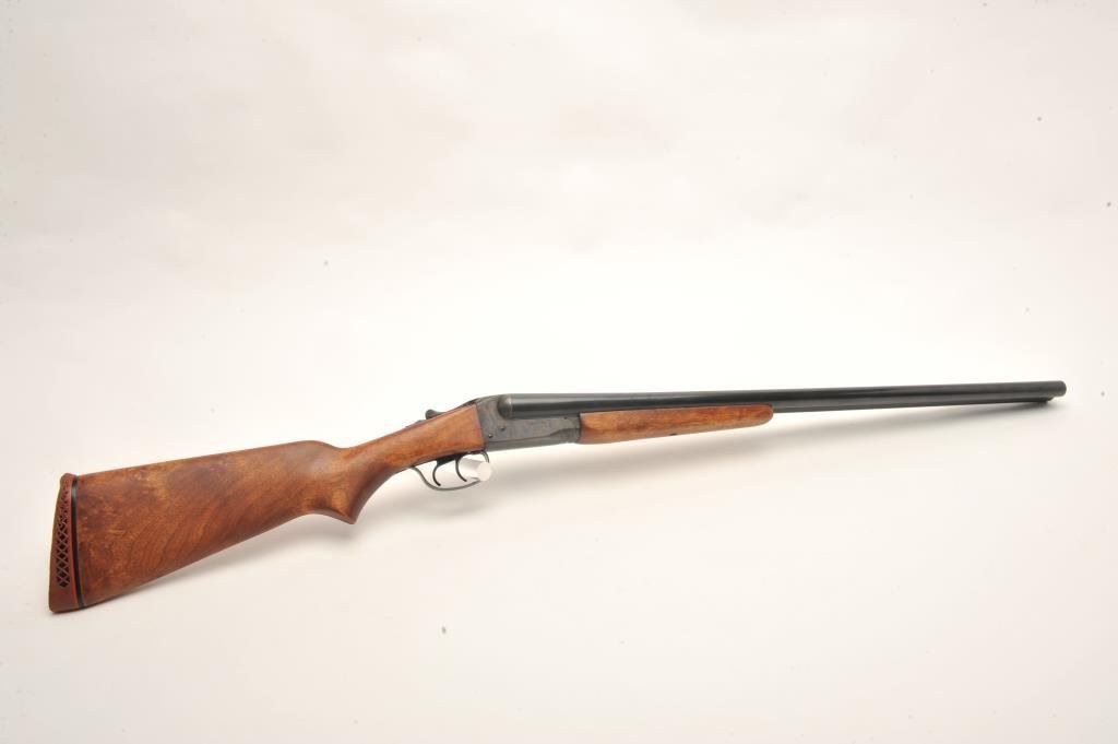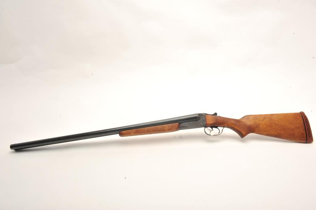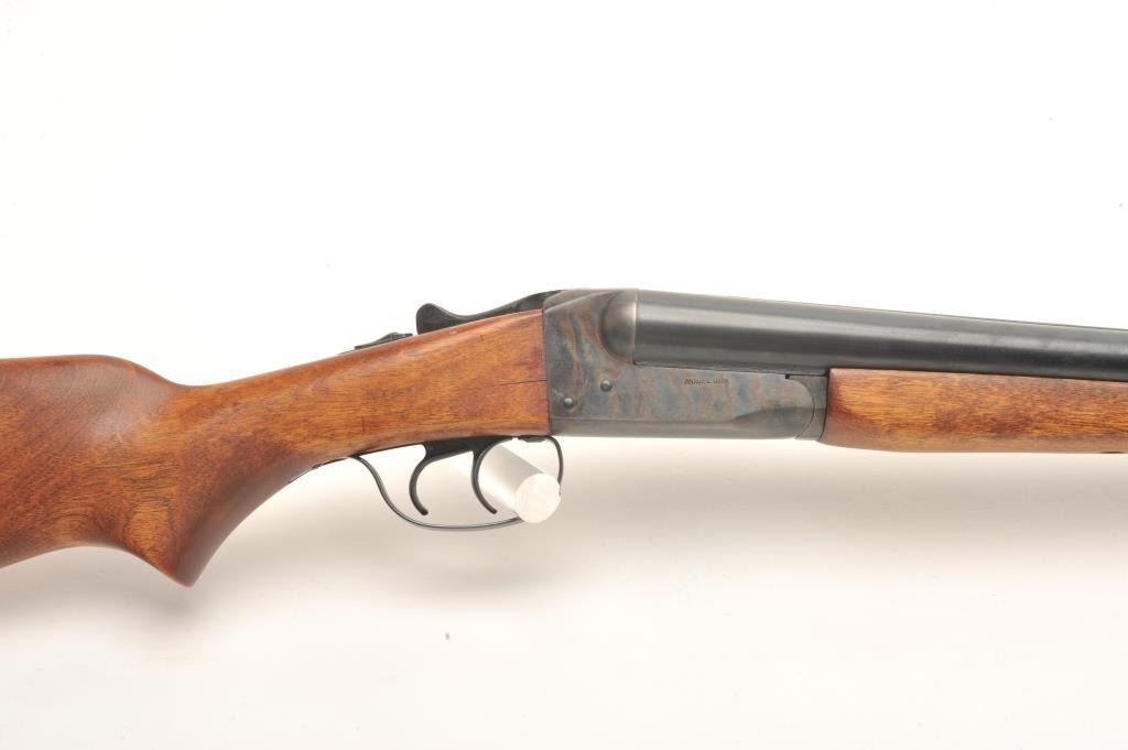 Stevens Model 311A SxS hammerless shotgun, 12 gauge, 28” barrels, double triggers, blued and case hardened finish, wood stocks, no visible S/N, in overall very good + condition showing the majority of its original blue on barrels and original case colors on receiver, very good bores, crisp actions, sharp markings and very good wood with a hard rubber butt pad that is somewhat deteriorated. (C&R). Est.:$300-$400.