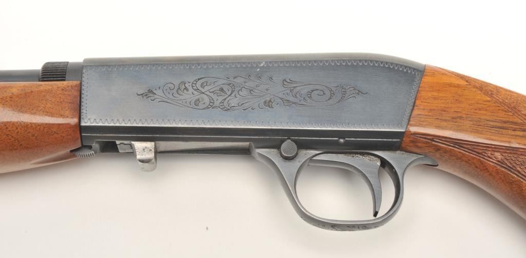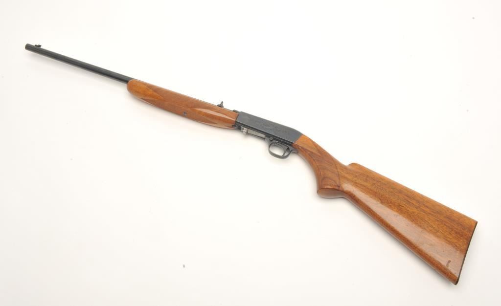 Lot 1053 Belgian Browning Grade 1 semi-auto rifle, .22 Long Rifle caliber, serial #4T9374. The rifle is in
