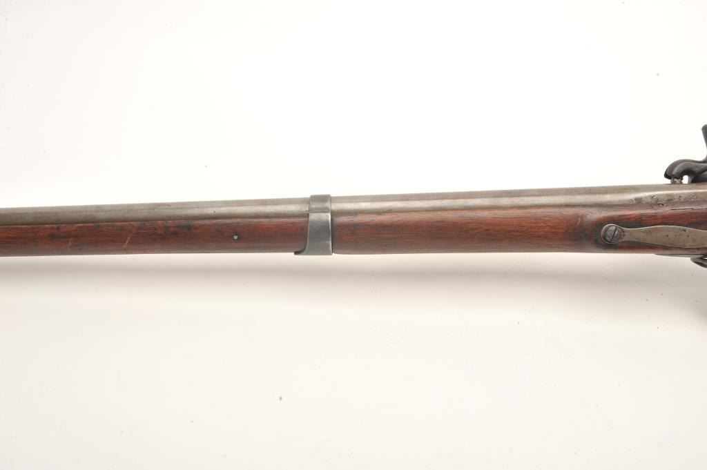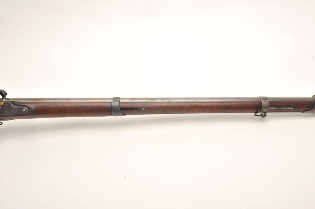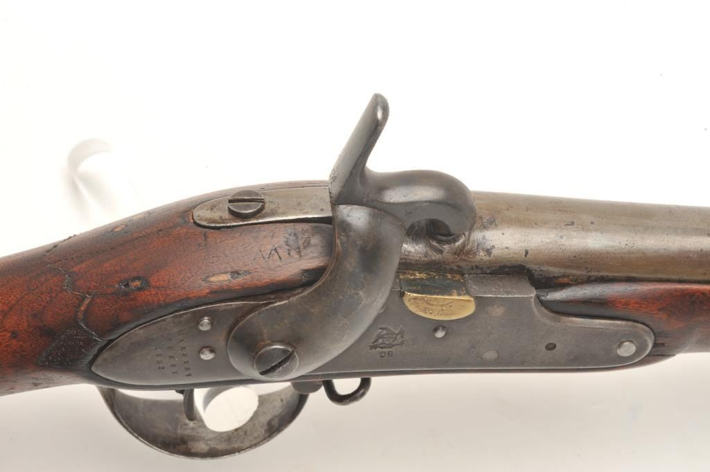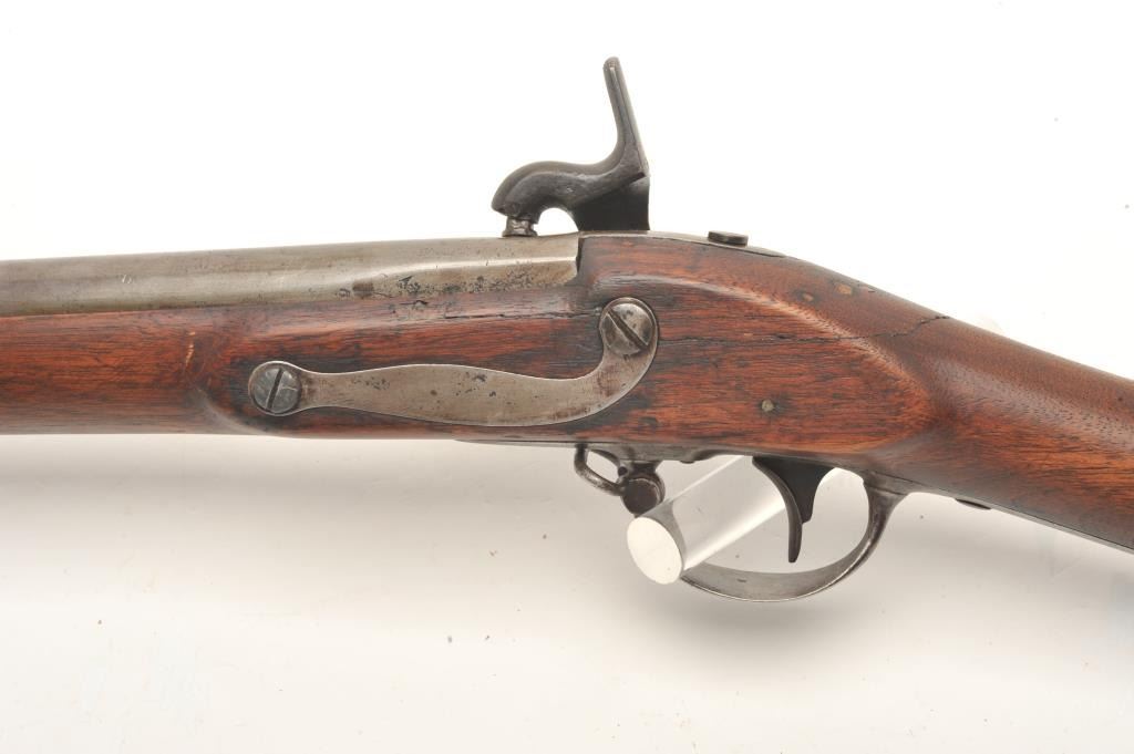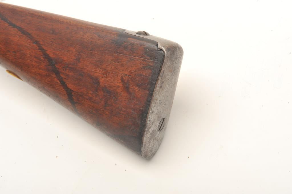 Lot 1055 Harper’s Ferry percussion conversion rifle, .69 caliber, 35.5” barrel, wood stock with old repairs