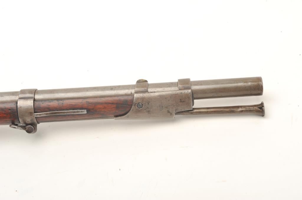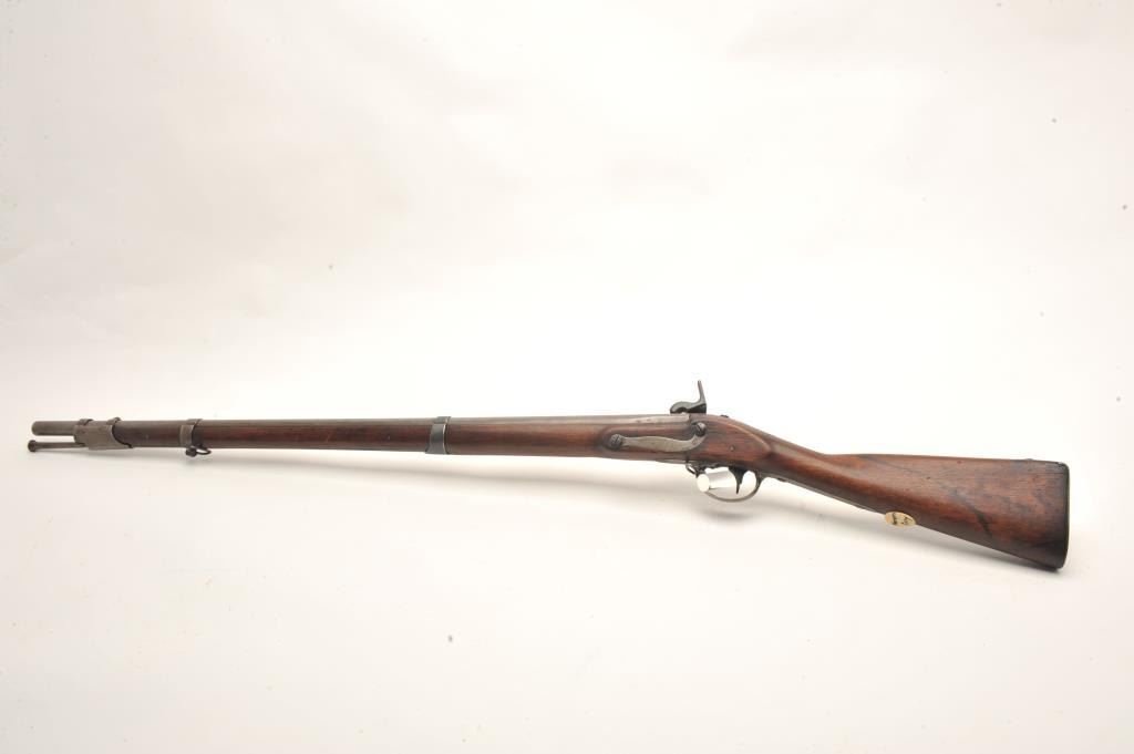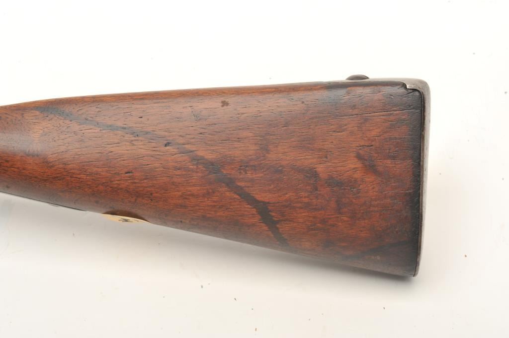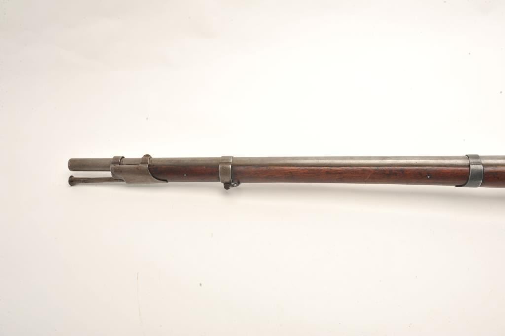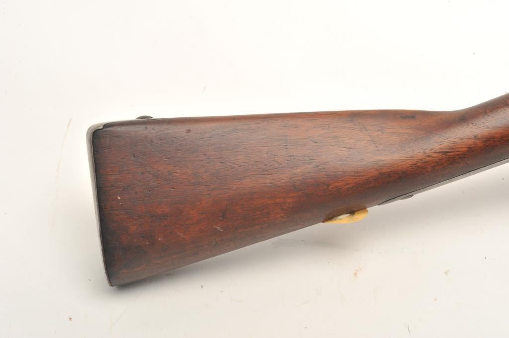 Lot 1055 Harper’s Ferry percussion conversion rifle, .69 caliber, 35.5” barrel, wood stock with old repairs