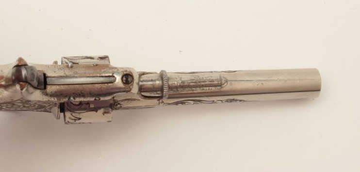 Lot 1061 Rare Whitneyville .22 caliber spur trigger revolver, 3” round barrel, non-fluted short cylinder, e