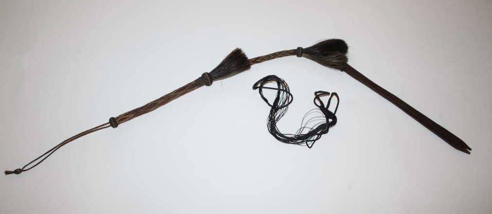 Woven horsehair quirt in very good condition. Est.: $250-$500.