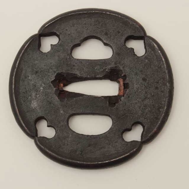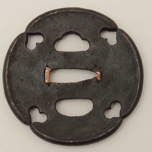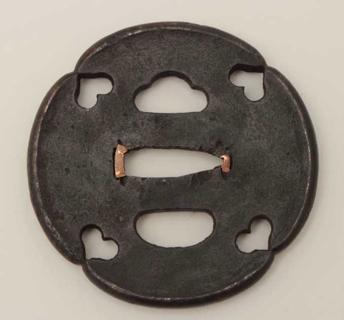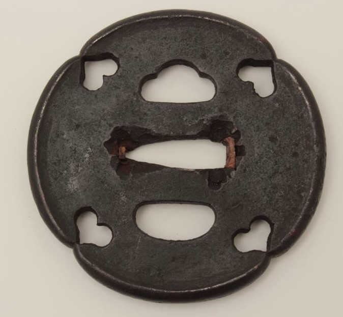 Lot 1072 A good early iron tsuba finely pierced with hearts. Fine patination. 200-400 years old. EST:$200-$