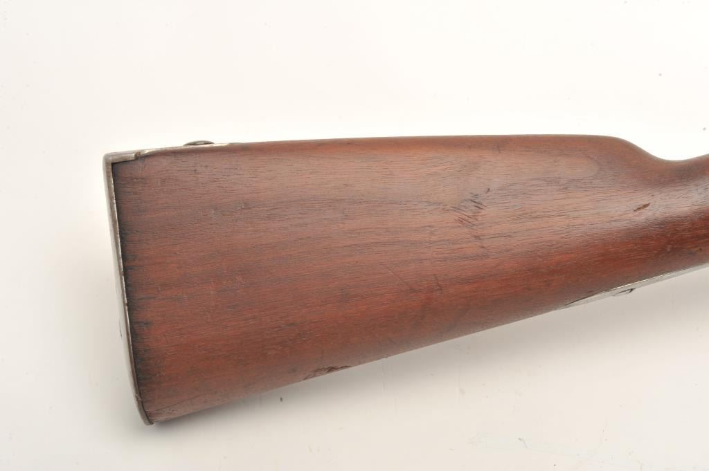 U.S. Springfield musket, lockplate dated 1846 (rear tang 1844), .69 caliber, 42” barrel, wood stock, with bayonet, scabbard and buff color hanger; in overall good to very good condition with in the white metal, goodmarkings and good wood displaying a small “49” at rear top of butt stock area and a small “19” stamped on the top of the butt plate. (Antique). Est.: $500-$1,000.