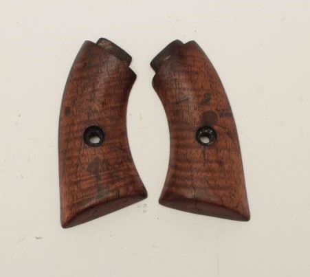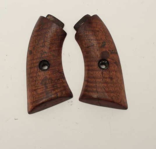 Lot 1099 Antique wood grips for small frame volcanic pistol showing American “Fiddleback Striping” like a K