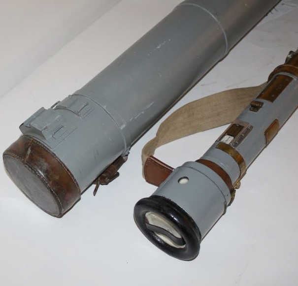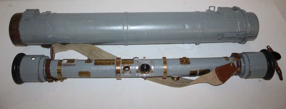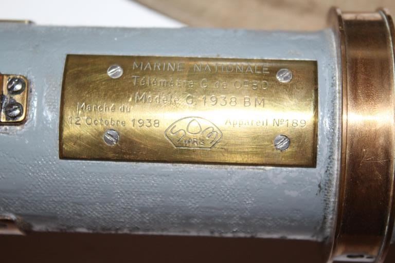 French Navy marked sighting device with plaque marked “Marine Nationale, Telemetre C de OM 80, Modele G 1938 BM, Marche du Octobre 1938, Appareil No. 189, Som-Paris”. The body measures 37” and in its original case. Avery expensive made sighting device likely for artillery. Very good condition. Est.: $300-$600