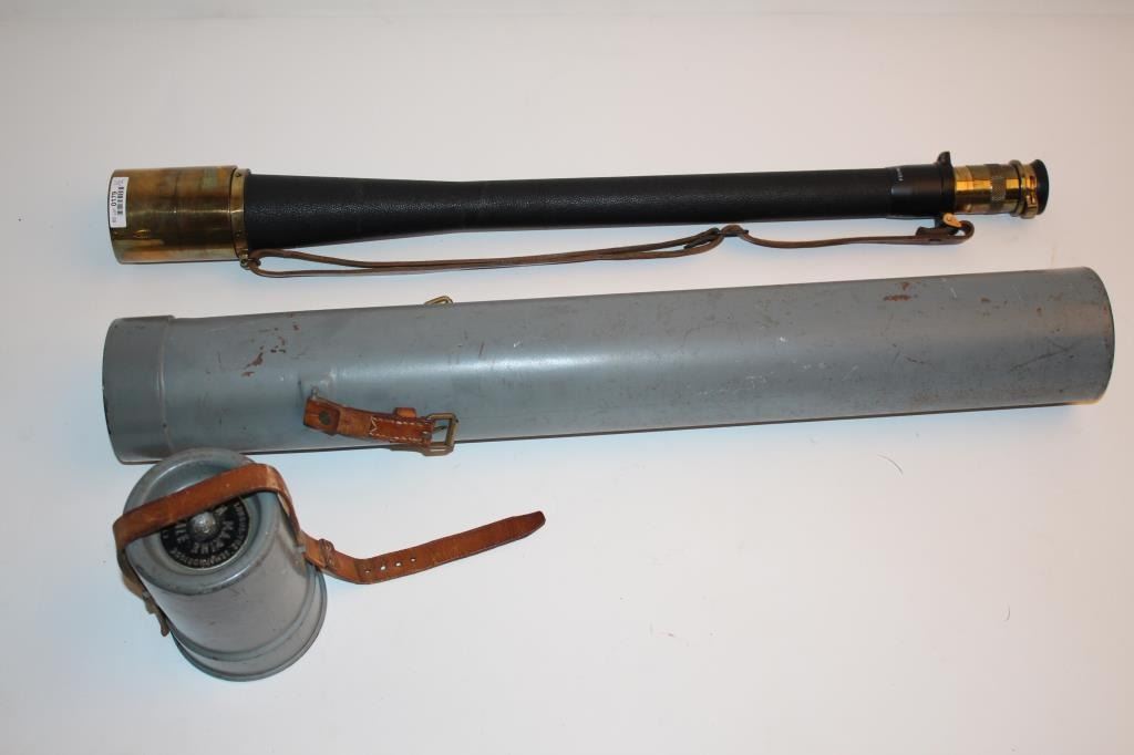 Lot 1108 French Navy ship telescope in case marked Model 1954. Som Paris Mfg marked #118 and also “Demontag