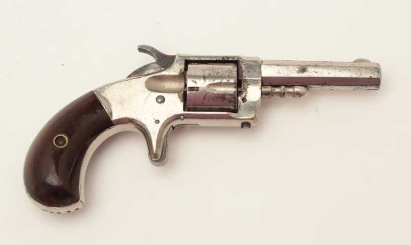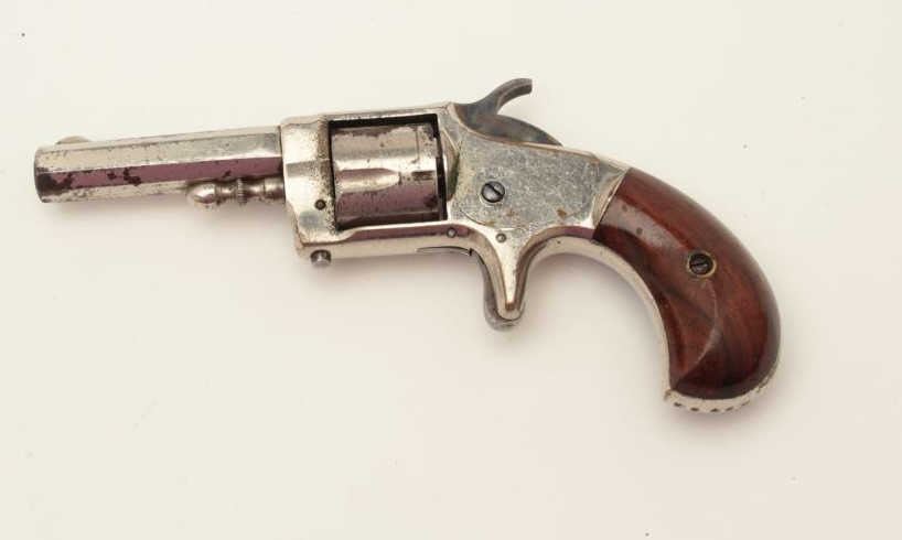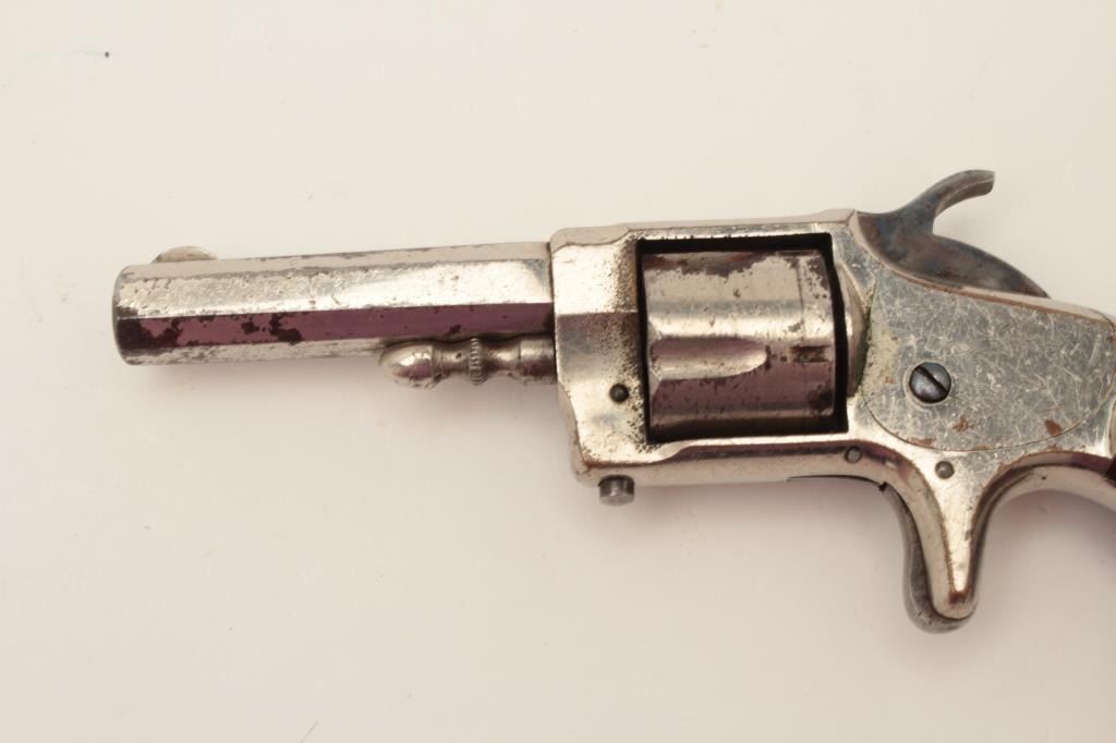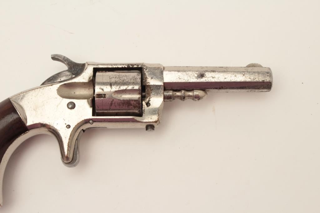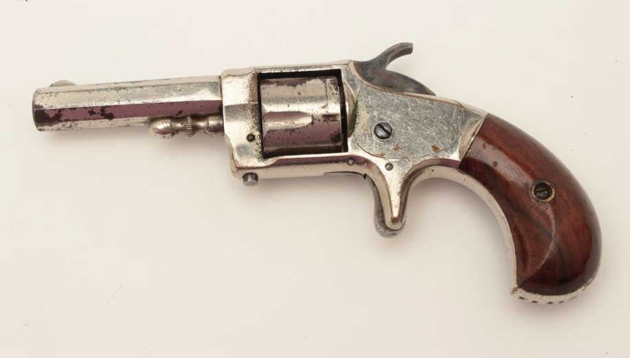 Whitneyville .30 caliber spur trigger revolver, 2.5” octagon barrel, nickel, rosewood grips, .30 caliber is rare, S/N 2346D, in overall very good + condition. (Antique). From the Whitney familycollection. Est.: $300-$600.