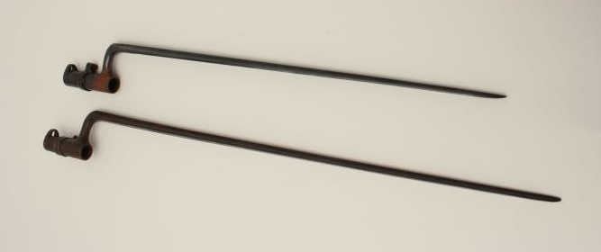 Lot 1125 Lot of 2 socket bayonets; one is U.S. marked, both un-cleaned. Est.: $100-$200.