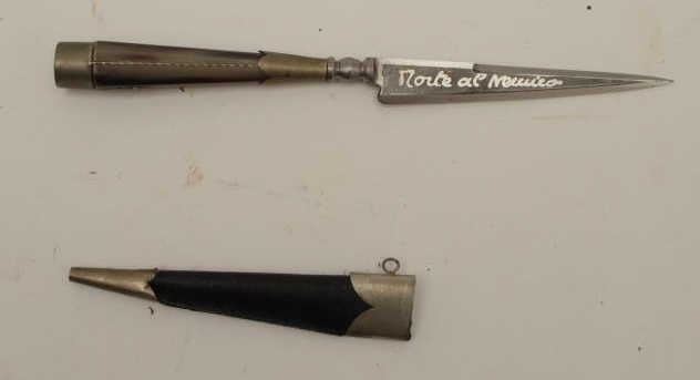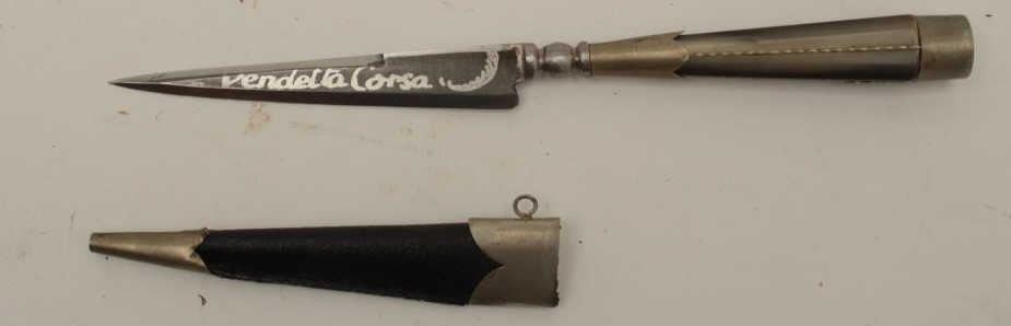 Lot 1127 Vendetta corsa etched dagger with scabbard. Measures 8 ½” overall with a 4 ¼” blade showing German