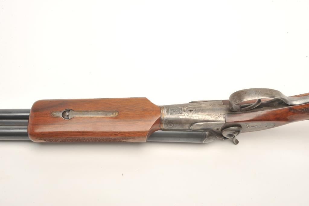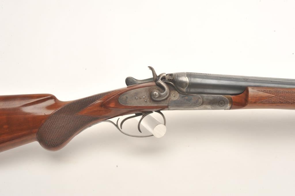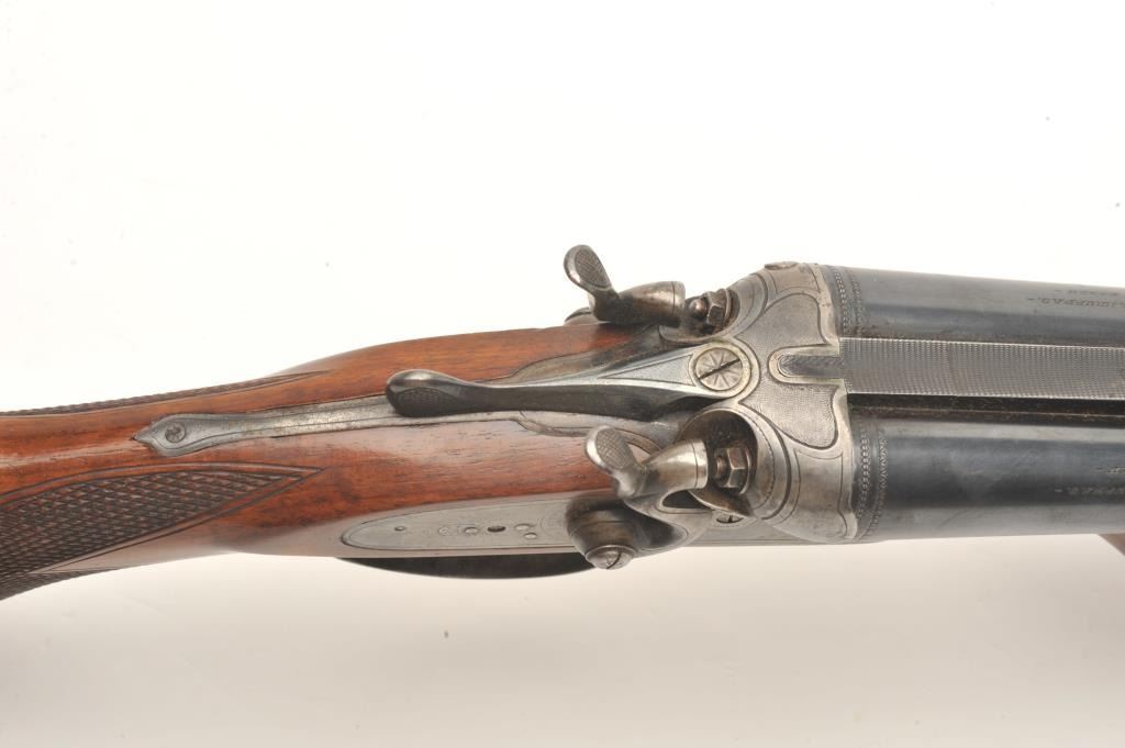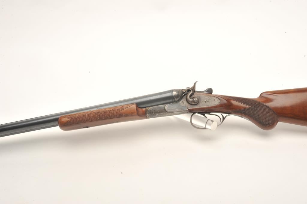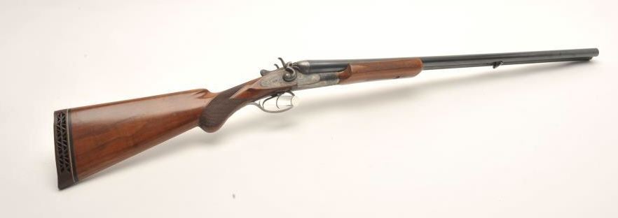 Lot 1145 J.P. Sauer & Sohn side by side hammer shotgun, 16 gauge, serial #NSNV. The shotgun is in very goo