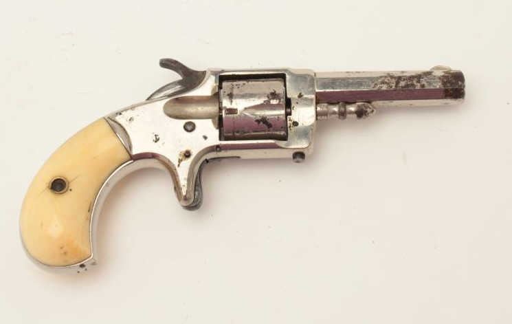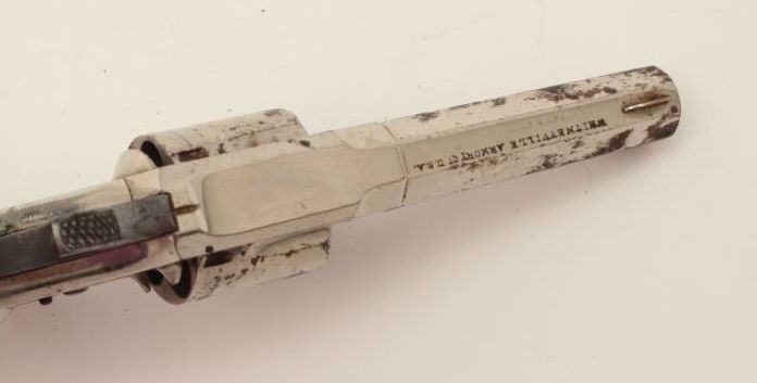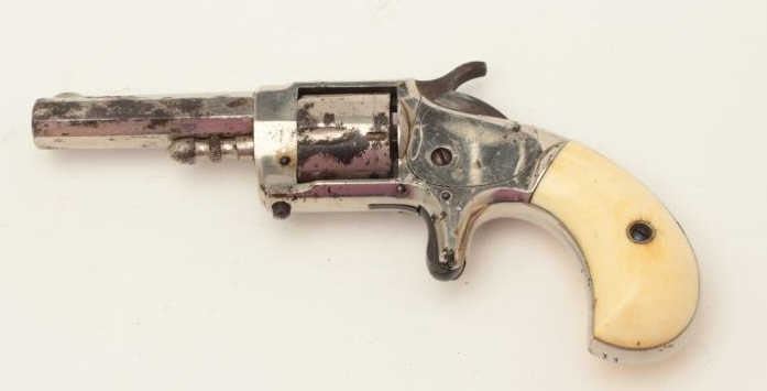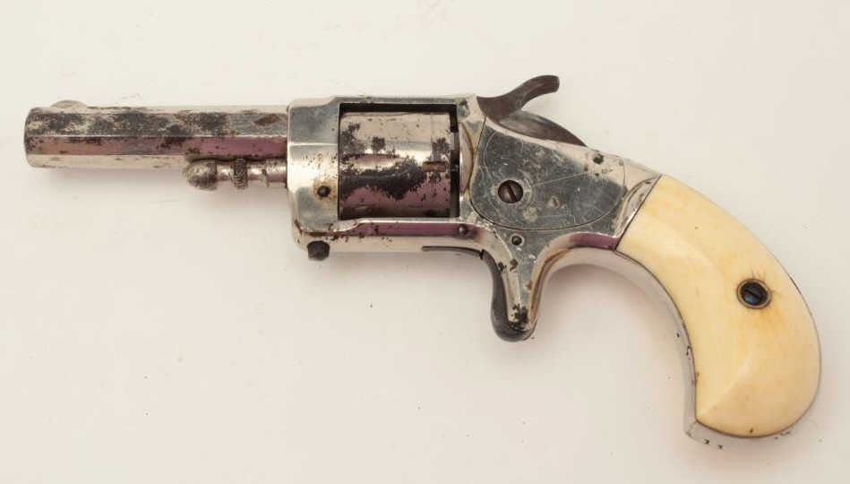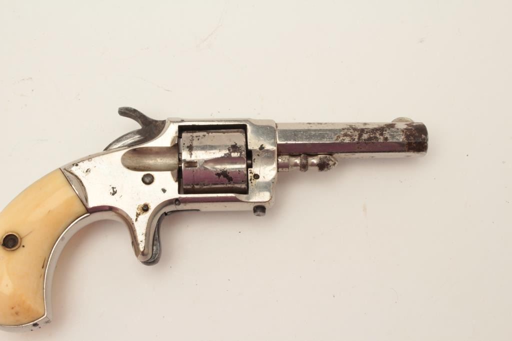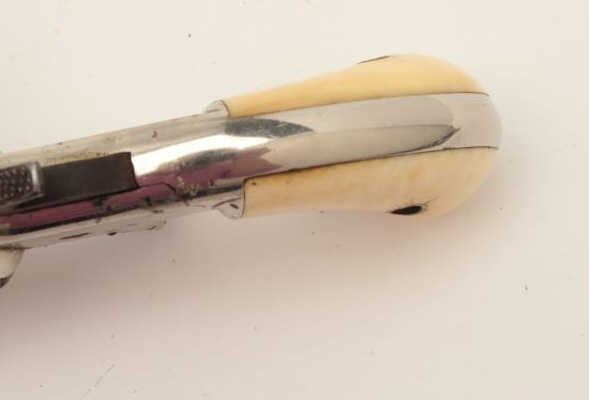 Whitneyville rare .30 caliber, 2.5” octagon barrel, nickel finish, ivory grips, S/N 11, overall very good condition with some scattered areas of erosion, considerable original nickel remaining; beautiful ivorygrips. (Antique). From the Whitney family collection. Est.: $350-$700.