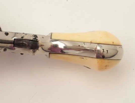 Lot 1156 Whitneyville rare .30 caliber, 2.5” octagon barrel, nickel finish, ivory grips, S/N 11, overall ve