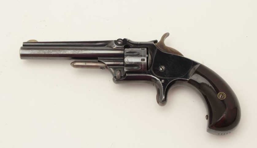 Lot 1164 Smith & Wesson Model 1 3rd Issue spur trigger revolver, .22 caliber, 3.25” barrel, blued finish, r
