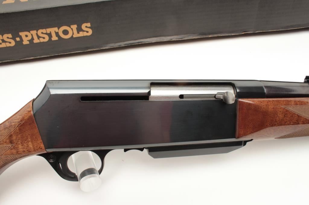 Lot 1168 Browning BAR in .338 Win. Mag. with 24” barrel. In box with paperwork. S/N 137NM18755. Made in Bel