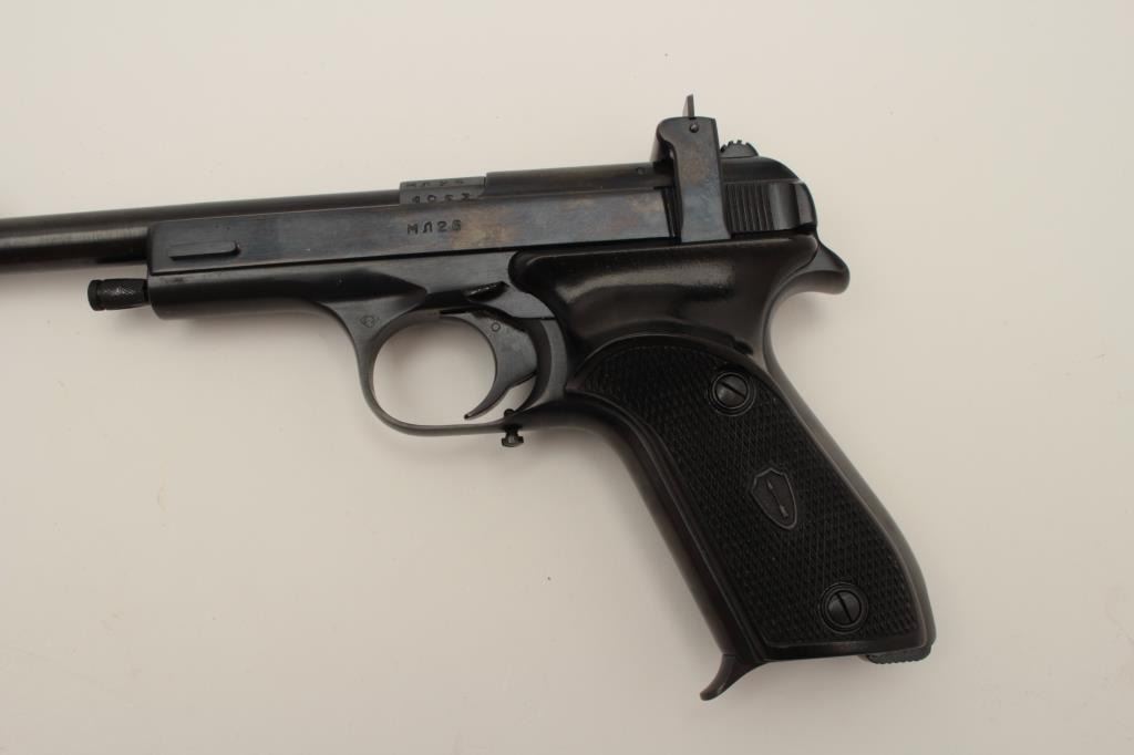 Lot 1201 U.S.S.R. Margolin semi-automatic target pistol, .22 caliber, 7.5” barrel, blued finish, checkered