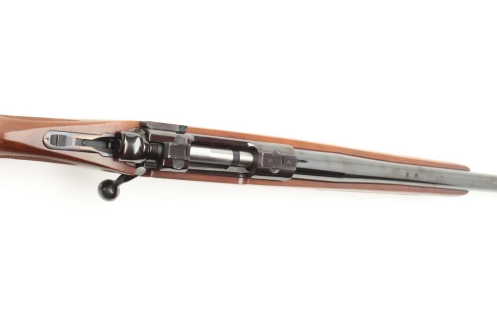Ruger Model 77 bolt action rifle, .220 Swift caliber, 26” barrel, blued finish, checkered wood stock, S/N 71-44090, in overall very good to fine condition showing the majority of its original blued finish, very good bore, crisp action and markings, fine wood stock. Also included are dies in this caliber. (Modern/PPT). Est.: $350-$700.