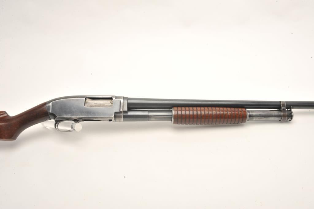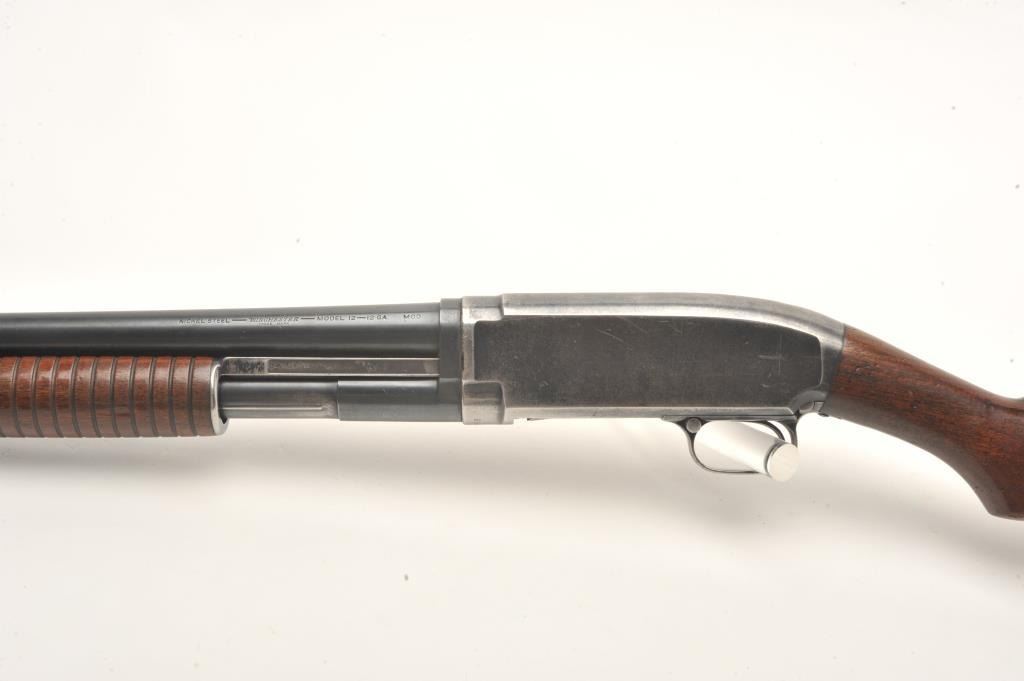 Lot 1229 Winchester Model 12 pump shotgun, 12 gauge, serial #521898. The shotgun is in good overall condit