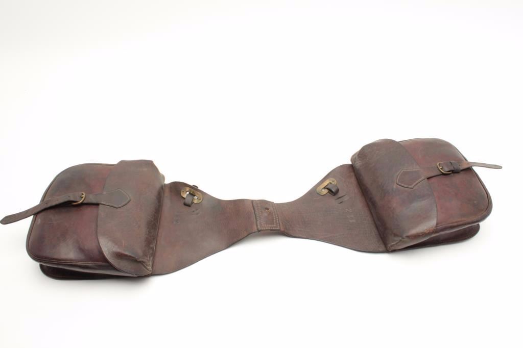 Lot 1252 Pair of brown leather with brass mountings saddle bags; stamped #112; about 1900 vintage/WW I; ver