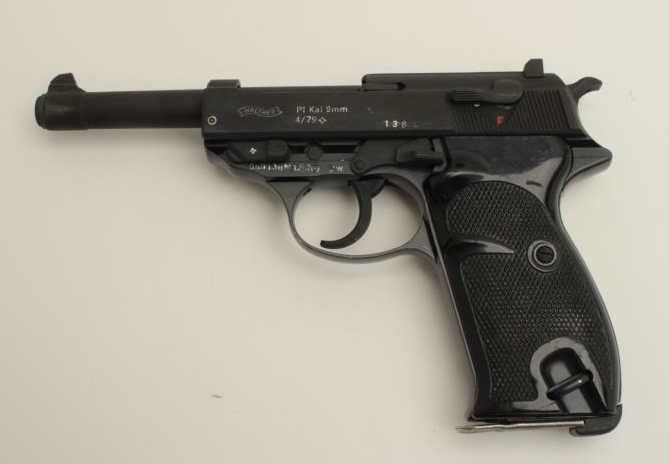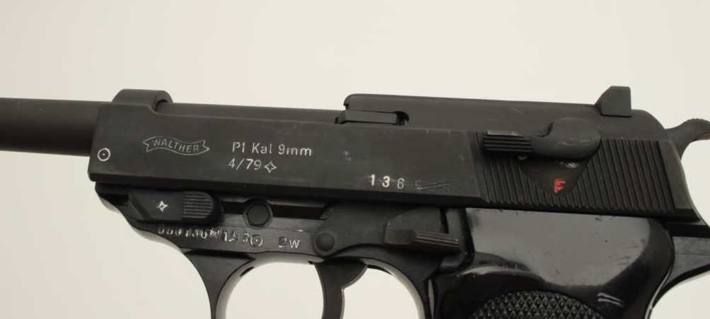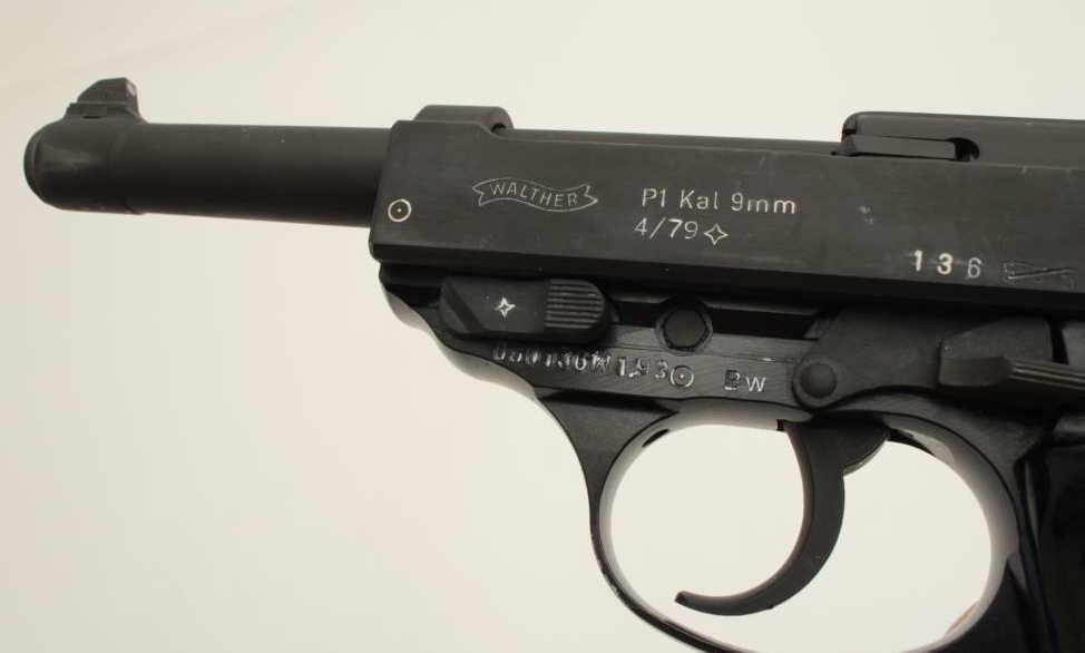 Lot 1265 Walther Model P1 DA semi-automatic pistol, 9mm caliber, 5” barrel, black finish, checkered black g