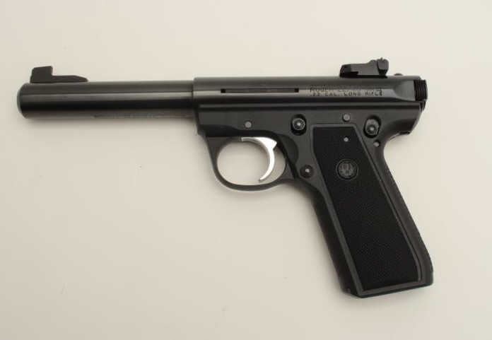 Lot 1266 Ruger Model 22/45 MK III semi-automatic pistol, .22LR caliber, 5.5” barrel, black finish, checkere