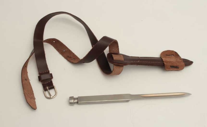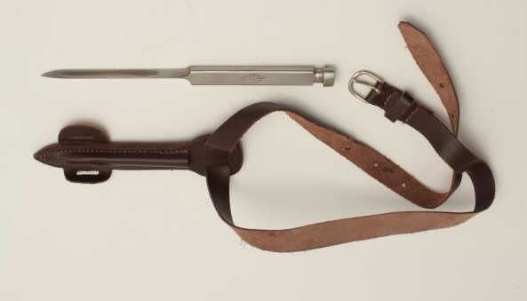 Lot 1271 Cross dagger marked “H.G. Long & Co. Sheffield, Eng.” with ankle strap scabbard. James Bond era. N
