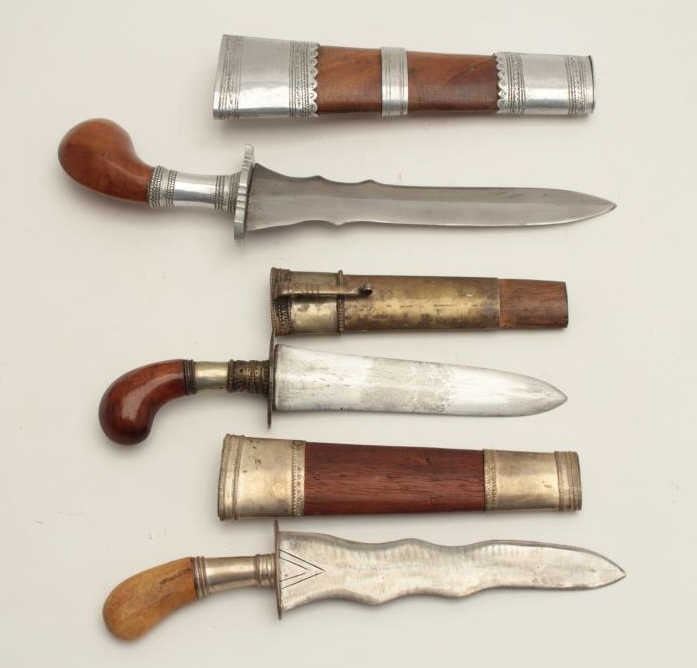Lot 1272 Southeast Asian to Philippine daggers (Punal Style) with 2 similar style but of large size. Est.: