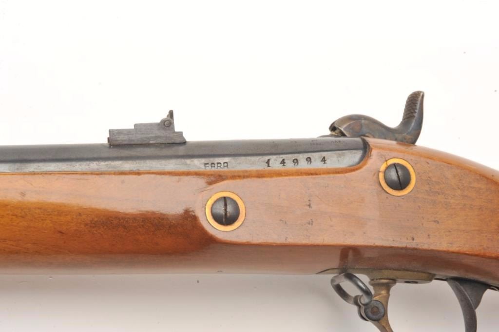 Lot 1332 Replica of a Zouve percussion rifle by Zoli, .58 caliber, 33” barrel, blued and case hardened fini