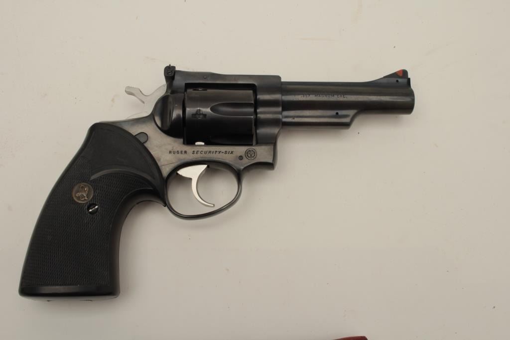 Lot 1343 Ruger Security-Six Model DA revolver, .357 Magnum caliber, 4” barrel, blued finish, checkered hard