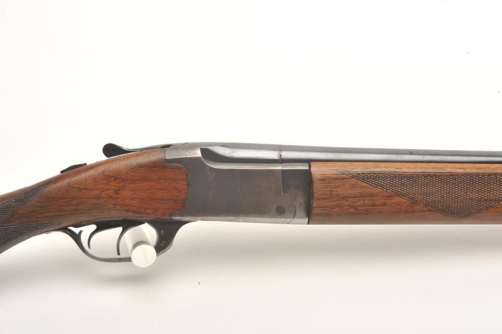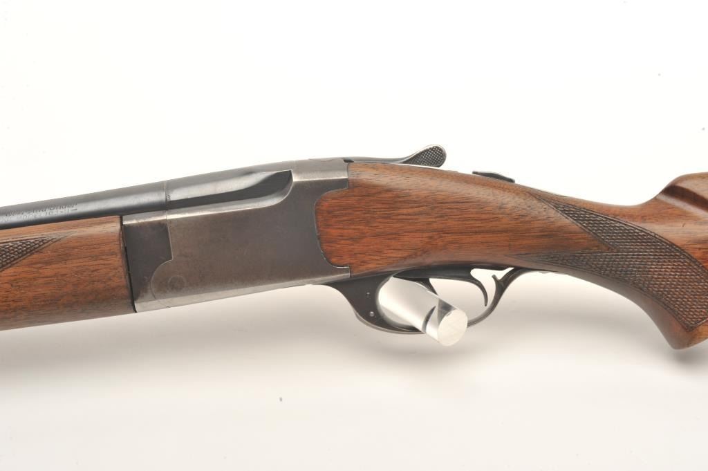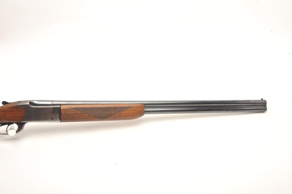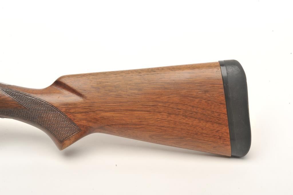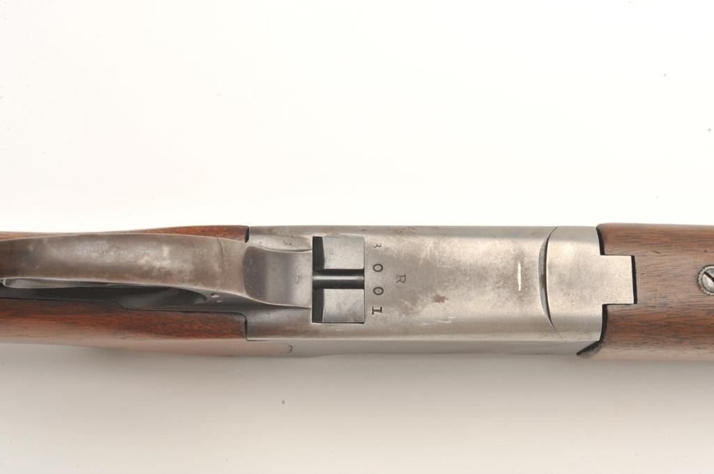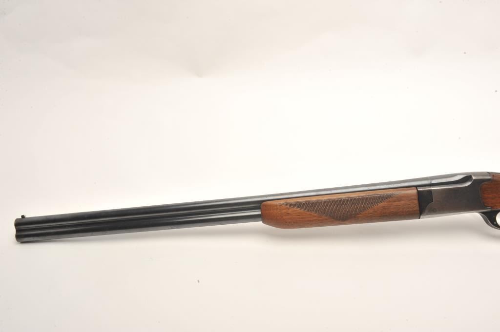 Marlin Ranger Model 103-11 O/U shotgun, 16 gauge, 28” barrel, blued finish, checkered wood stocks, S/N 3001, in overall very good condition displaying considerable blued finish, very good bores, crisp actions; goodwood with an old crack to the back right side of the forend, added butt pad, double triggers. (Modern). Est.: $125-$250.