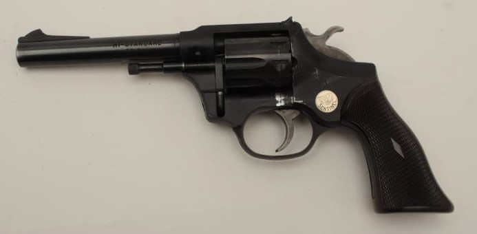 Lot 1357 Hi-Standard Model R=100 DA revolver, .22 caliber, 5” barrel, blued finish, checkered brown plastic